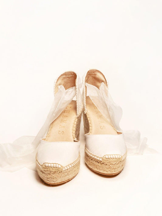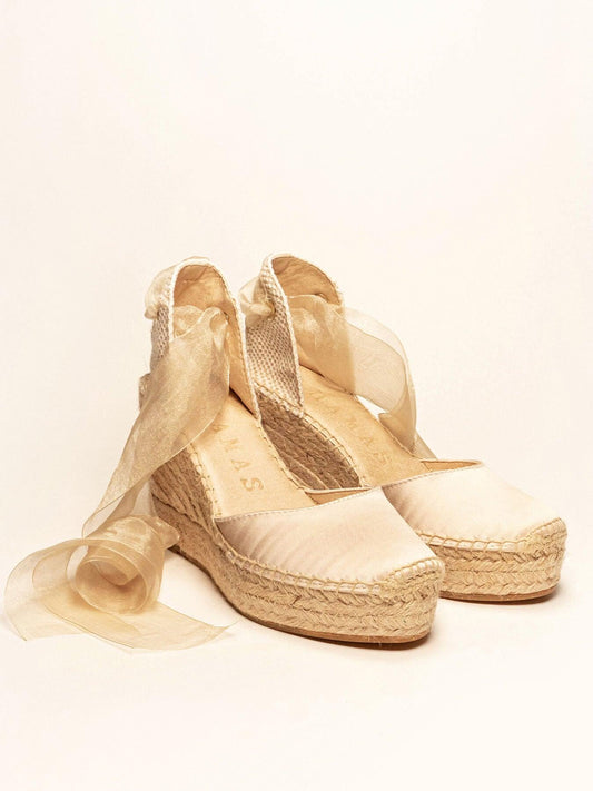 Nuestras alpargatas con cintas son súper cómodas! Alpargatas artesanales cosidas a mano en la Rioja por nuestros maestros artesanos, alpargatas sostenibles, con materiales reciclado, naturales, orgánicos y una selección de las mejores pieles certificadas por el "Leather Working Group". Alpargatas con cintas cómodas gracias a la plantilla acolchada que cubre toda la planta. Alpargatas cómodas con cuña de 10 centímetros que llevarás durante todo el día. Tus alpargatas con cintas podrás atarlas de diferentes maneras. Las alpargatas con un toque rural chic, atemporales, de fondo de armario, con un punto de color y originalidad.