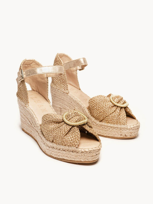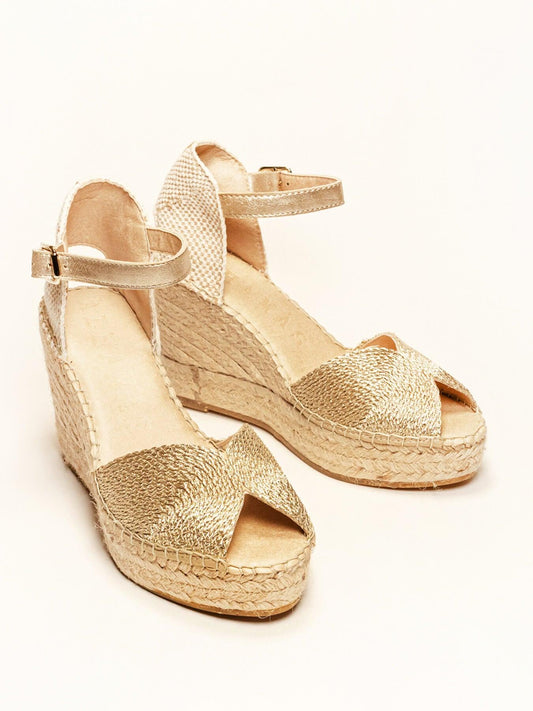 Amapola Cuña Media Plataforma Taloncillo Oro