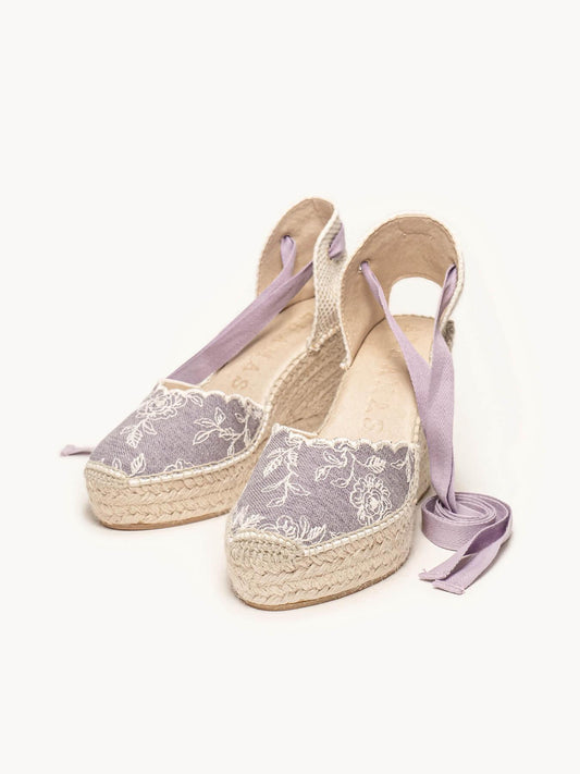 Romero Cuña Alta Vaquero Bordado Lila