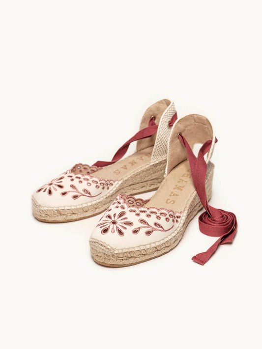 Romero Cuña Baja Lona Bordada Granate