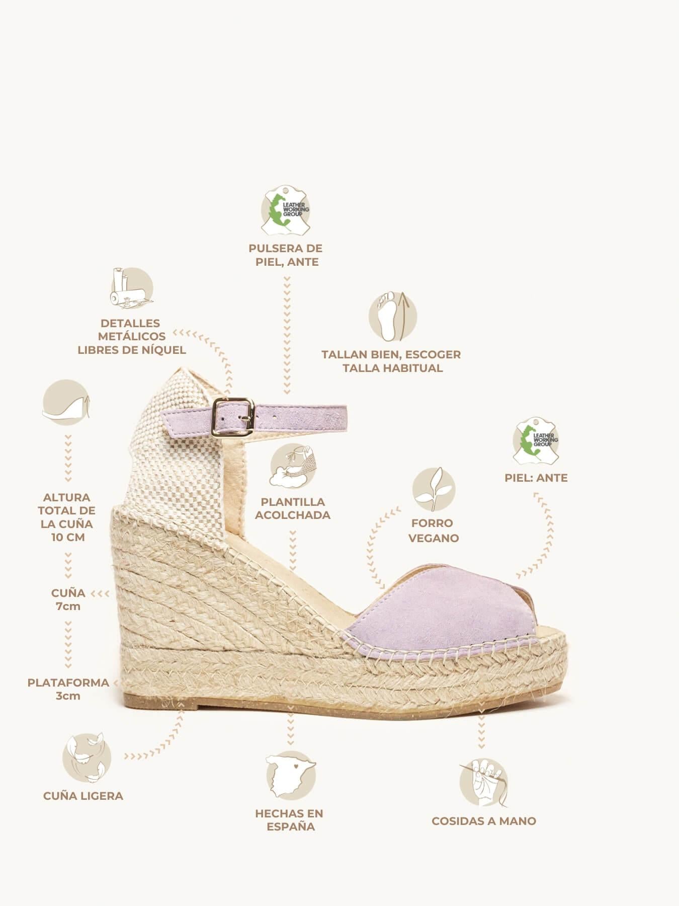 - El Ante de la alpargata Alelí está certificado por el Leather Working Group (una organización que promueve prácticas ambientales sostenibles)