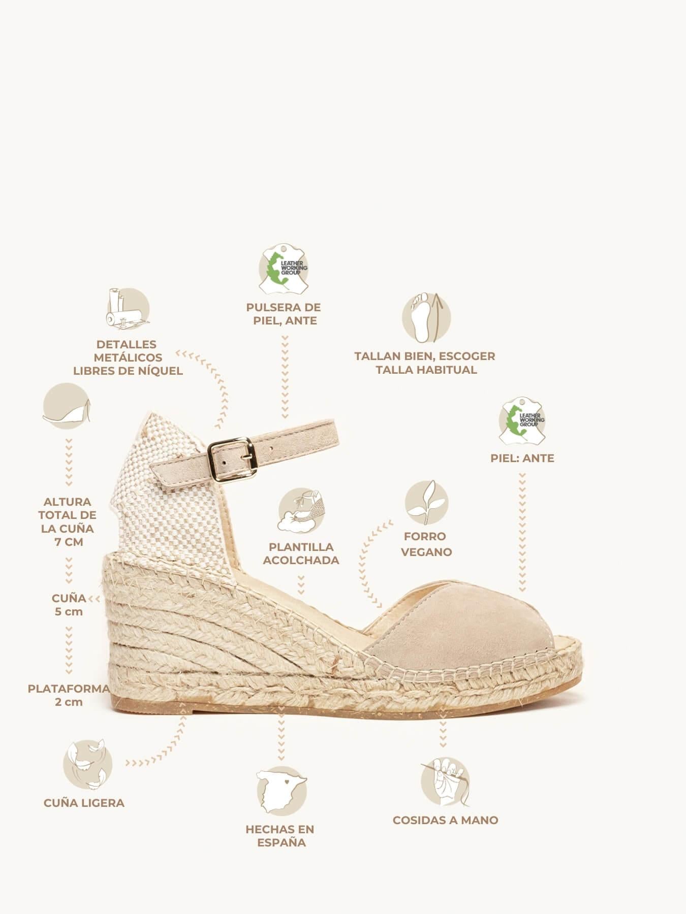 - El Ante de la alpargata Alelí está certificado por el Leather Working Group (una organización que promueve prácticas ambientales sostenibles)
