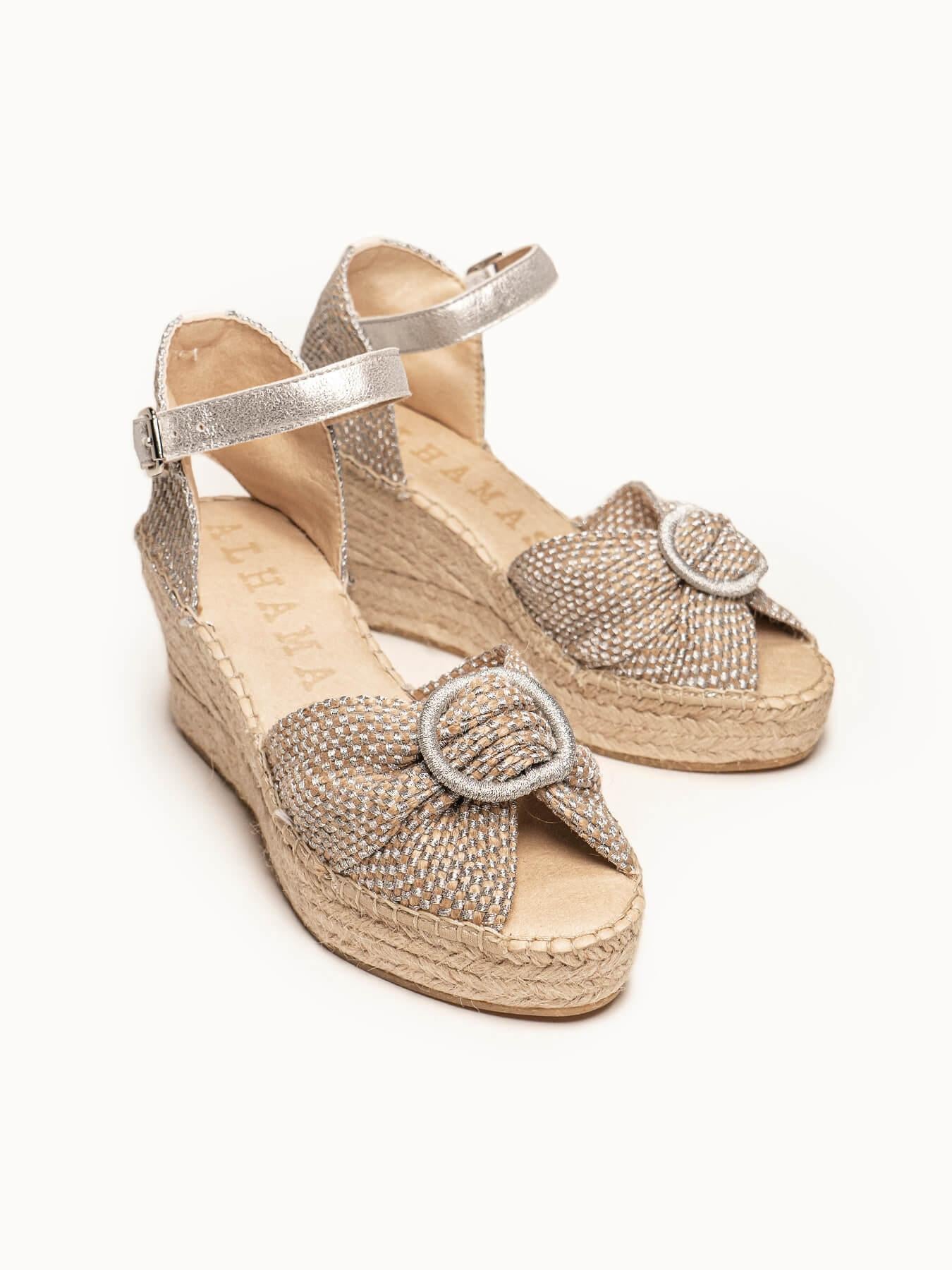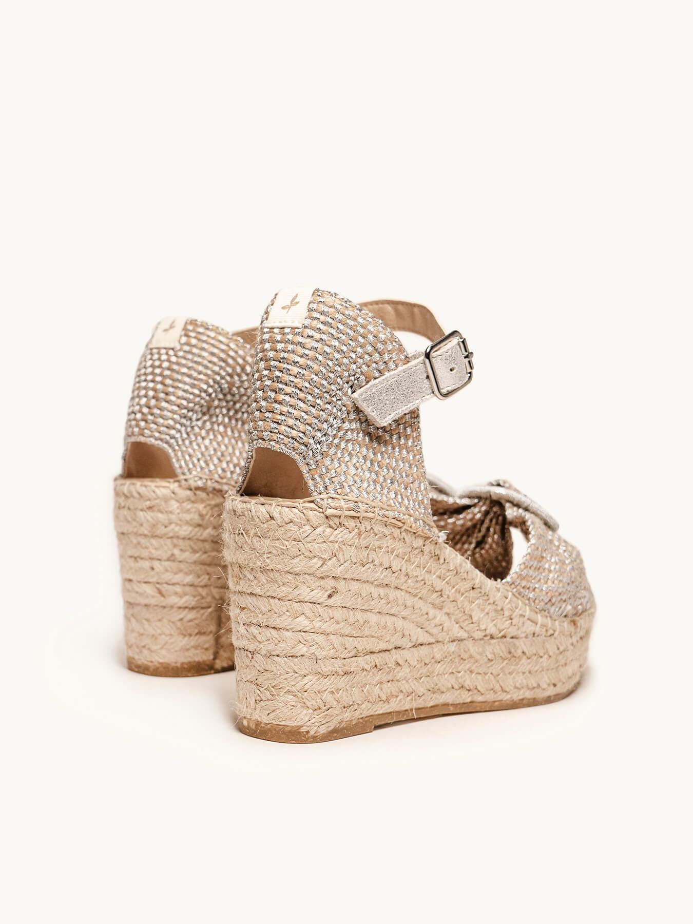 - Cuña de trenza de Yute natural con suela de goma reciclada mezclada con fibras naturales.