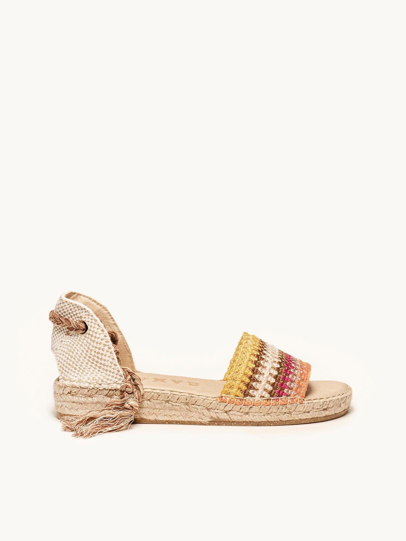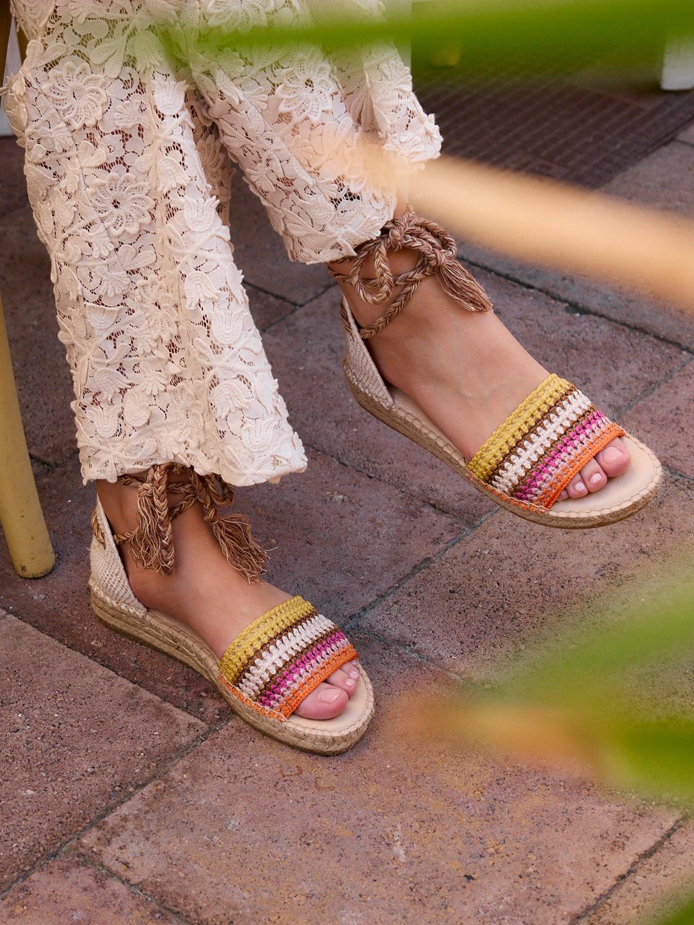 La alpargata plana Aulaga, es uno de nuestros modelos más románticos. Nuestra alpargata sandalia con cintas es un modelo muy versátil, ideal para el día a día y también para darle un toque muy chic a los looks más especiales. Unas alpargatas de volantes con cintas muy especiales ya que podrás atarlas de diversas formas.