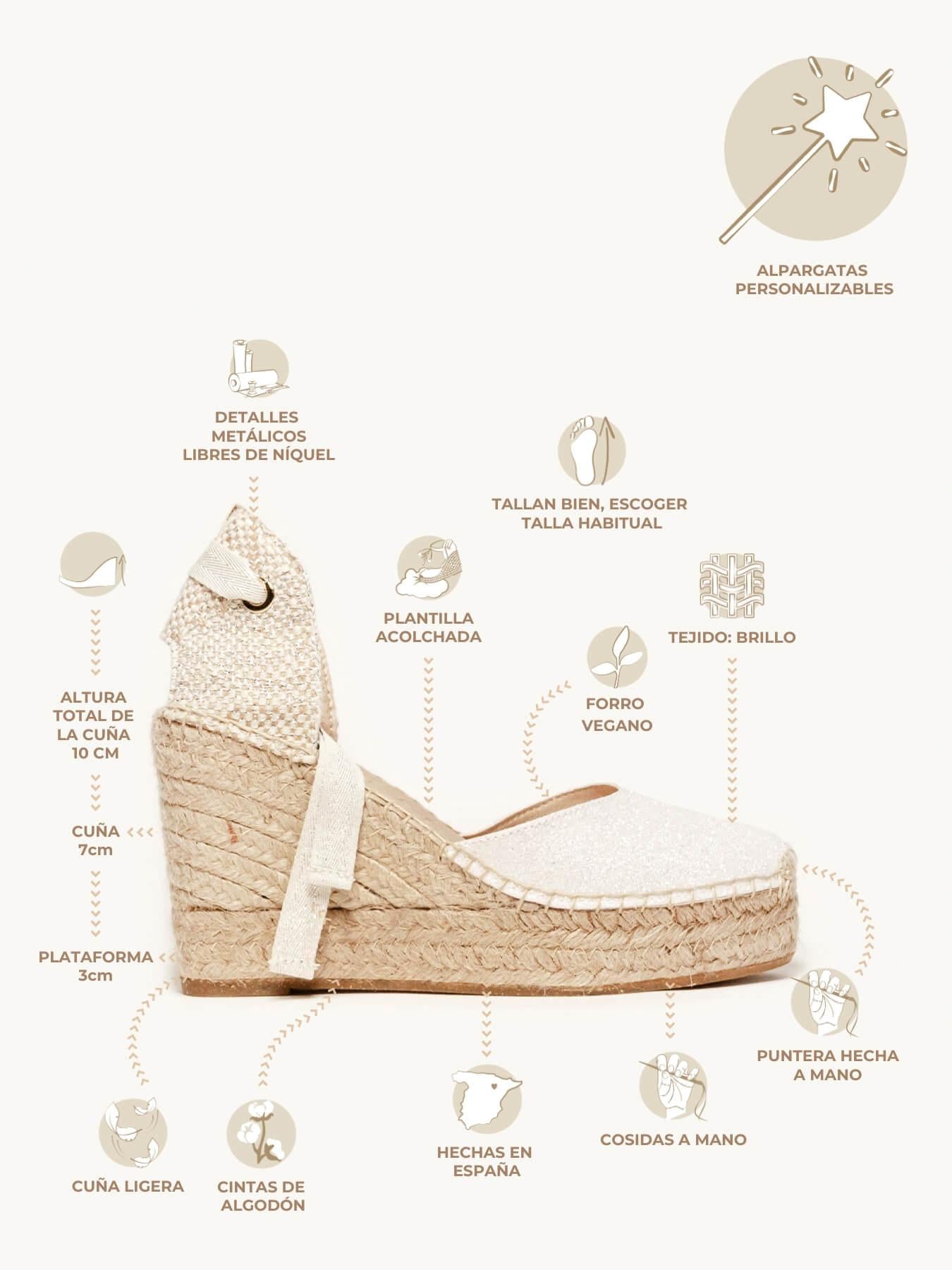 Alpargata Cuña Alta: 10 cm totales (3 de plataforma + 7 de cuña).