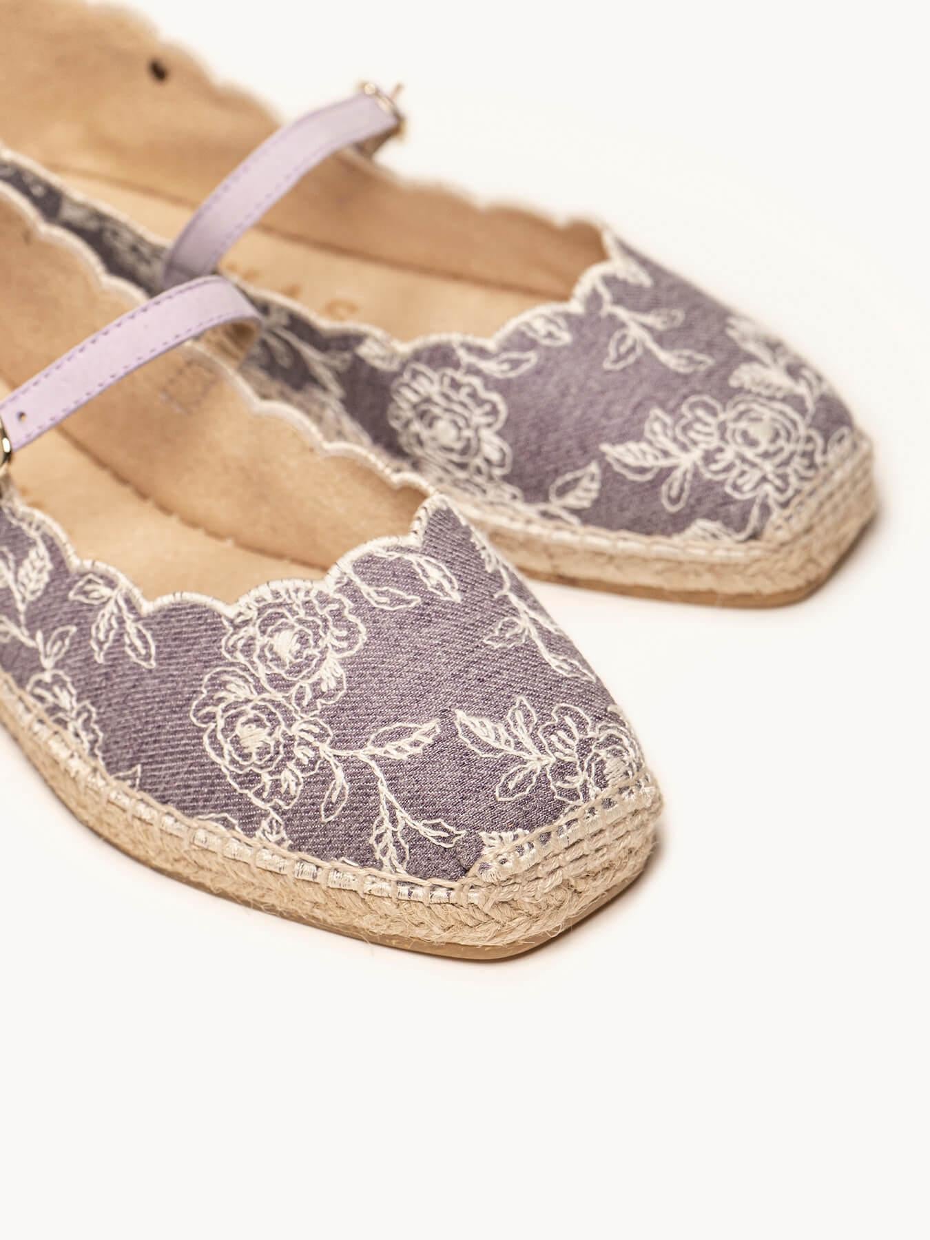 - El tejido de la alpargata Campanilla es de algodón y poliéster reciclado combinado con traba de piel.