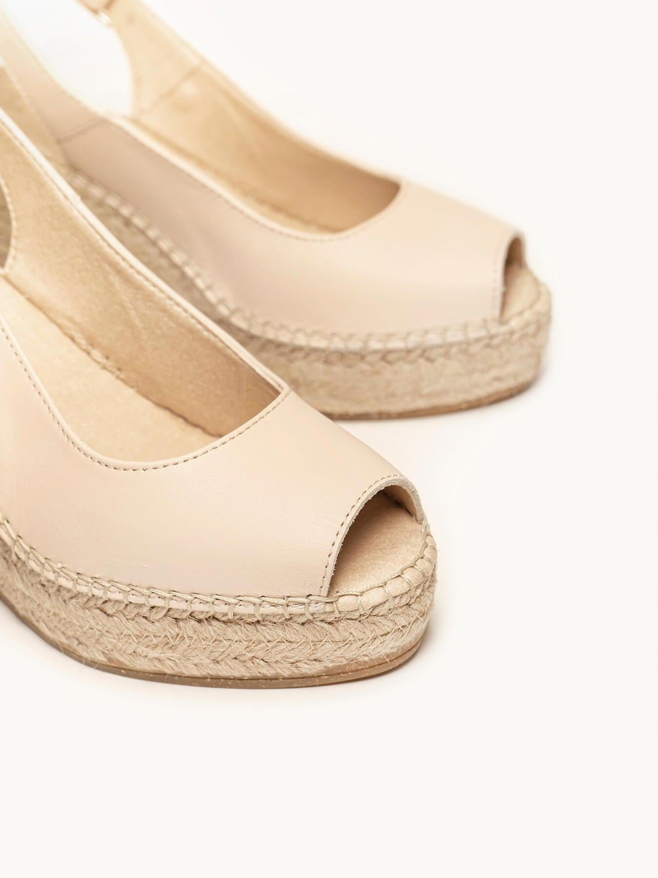 La alpargata de cuña alta Clavel, es uno de nuestros favoritos. Nuestro salón con escote redondo es un modelo muy versátil, ideal para el día a día y también para darle un toque muy chic a los looks más especiales. Las alpargatas con cuña estilo salón se sujetan muy bien al tobillo, irás súper cómoda durante todo el día.
