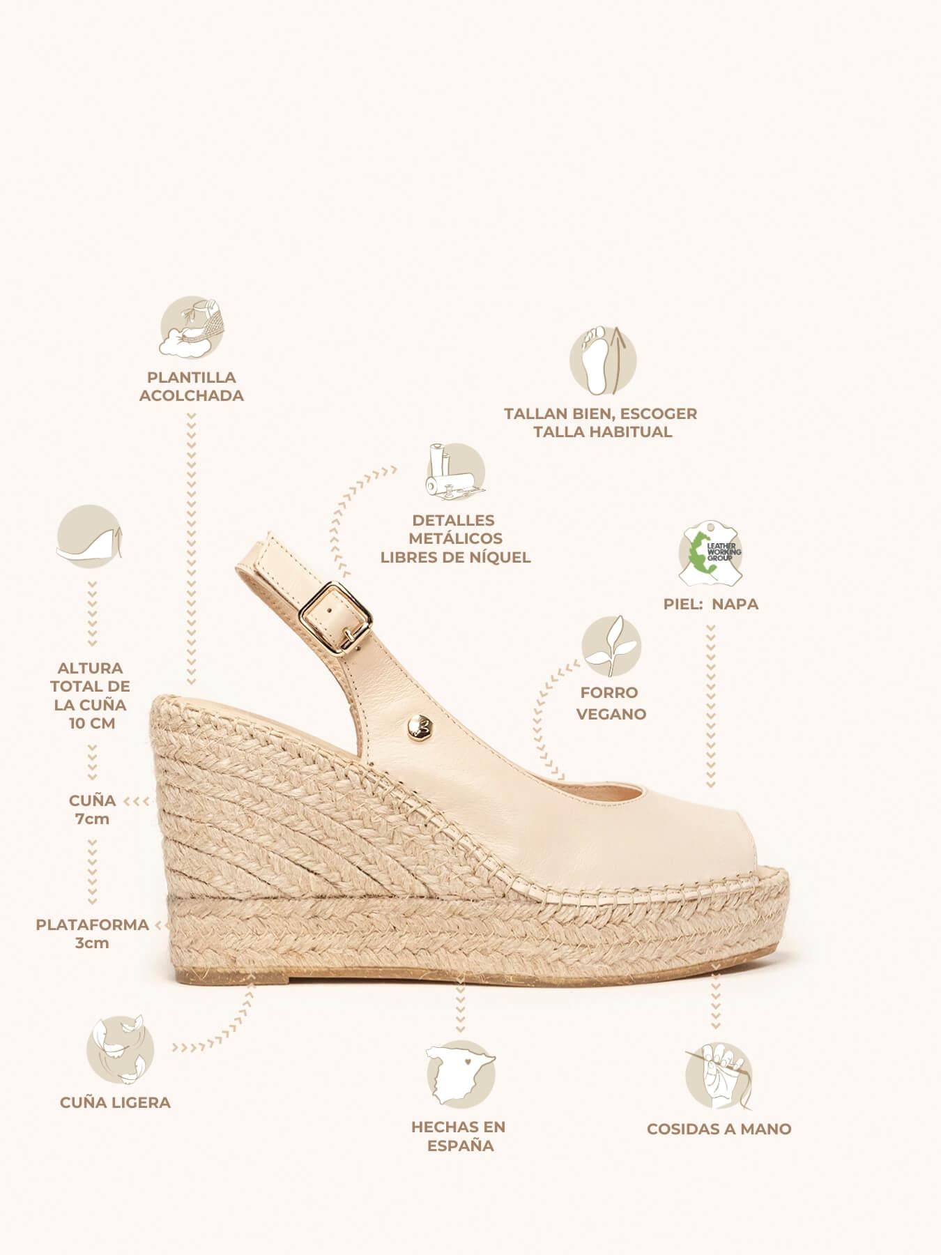 Alpargata Cuña Alta: 10 cm totales (3 de plataforma + 7 de cuña).