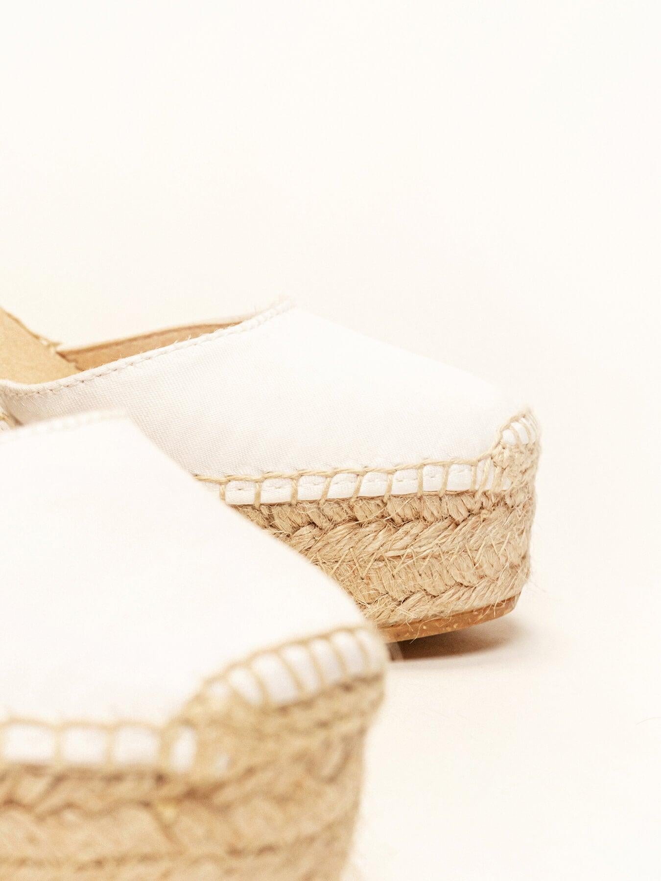 La alpargata de cuña alta Dalia, es uno de nuestros modelos más especiales, perfecto para tu día. Las alpargatas de novia que podrás elegir como primera opción o como alpargatas de cambio. Conservarás la altura, gracias a su pulsera las llevarás bien sujetas a tu pie y llevarás las alpargatas cómodas que te permitirán disfrutar al máximo.