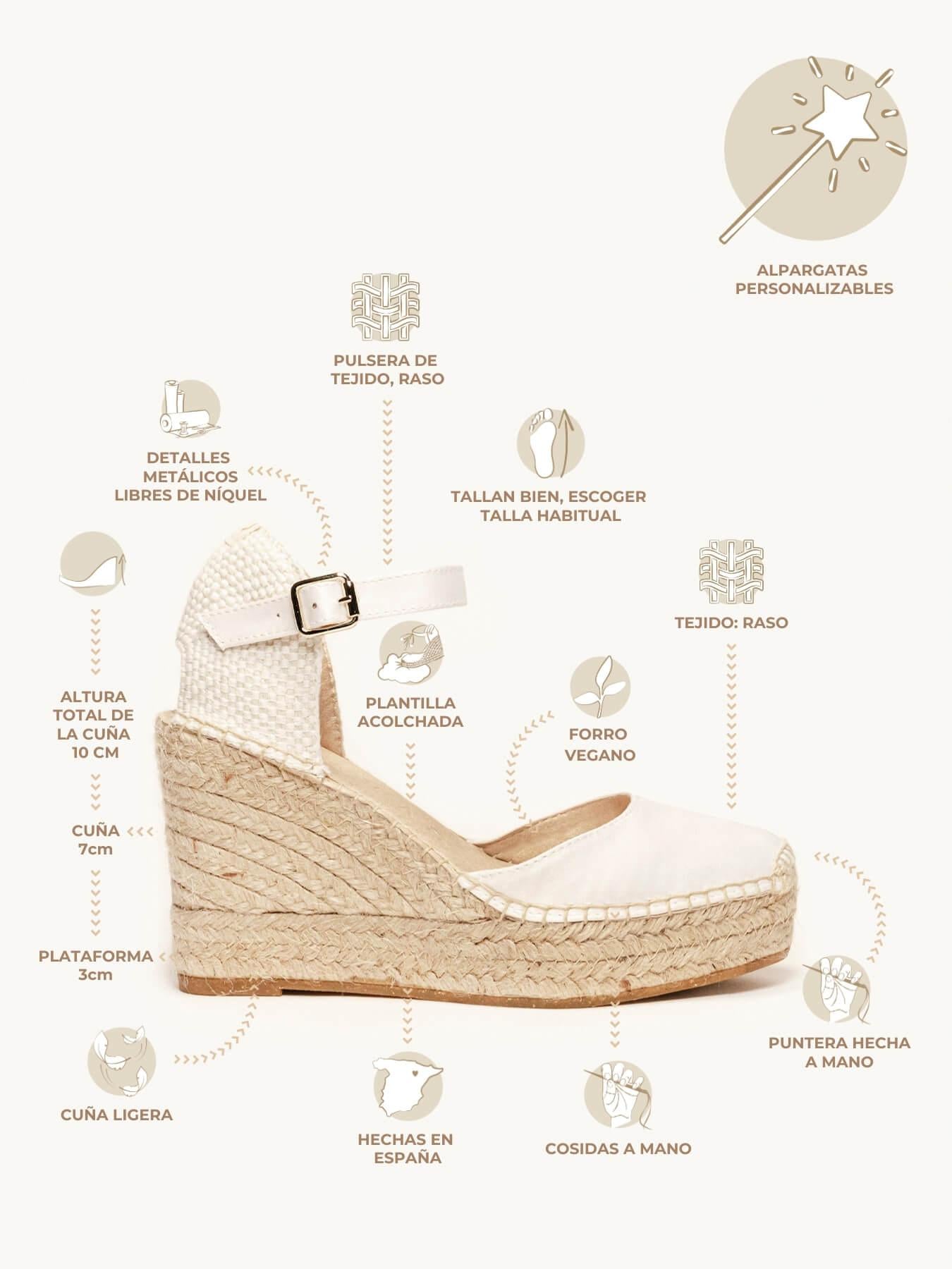 Alpargata Cuña Alta: 10 cm totales (3 de plataforma + 7 de cuña).
