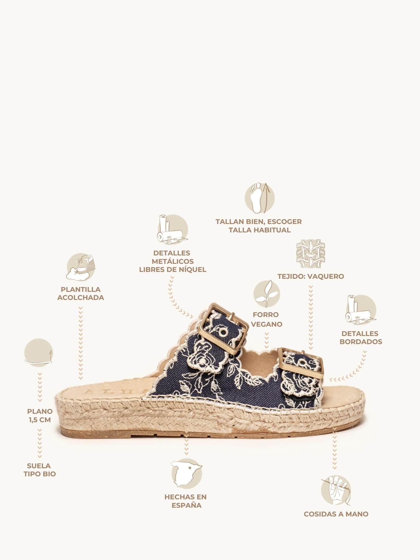 La alpargata bio Girasol, es un modelo ideal para tu día a día. Una sandalia plana con hebillas perfecta para ir cómoda y chic con tus looks más veraniegos.