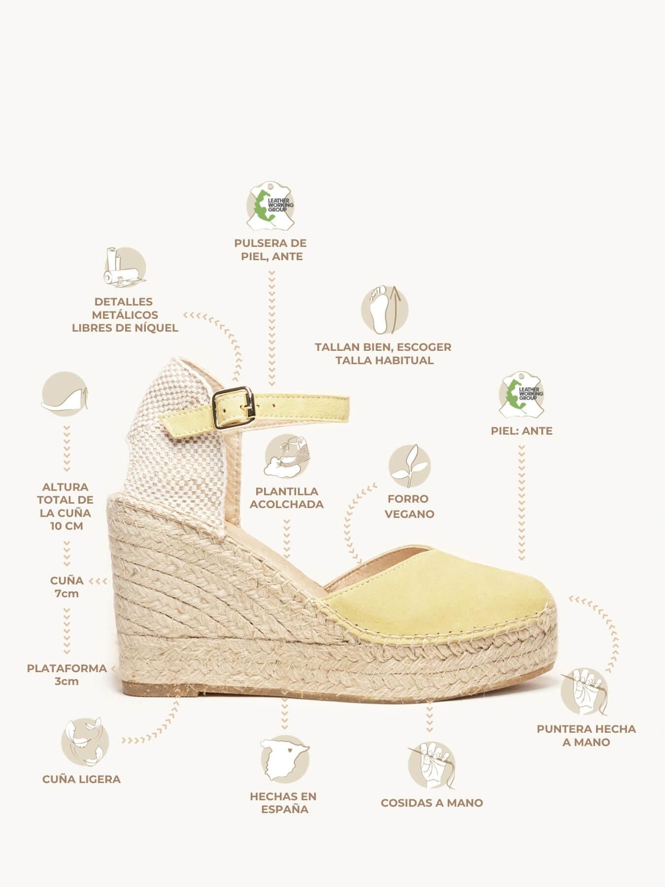 Alpargata Cuña Alta: 10 cm totales (3 de plataforma + 7 de cuña).
