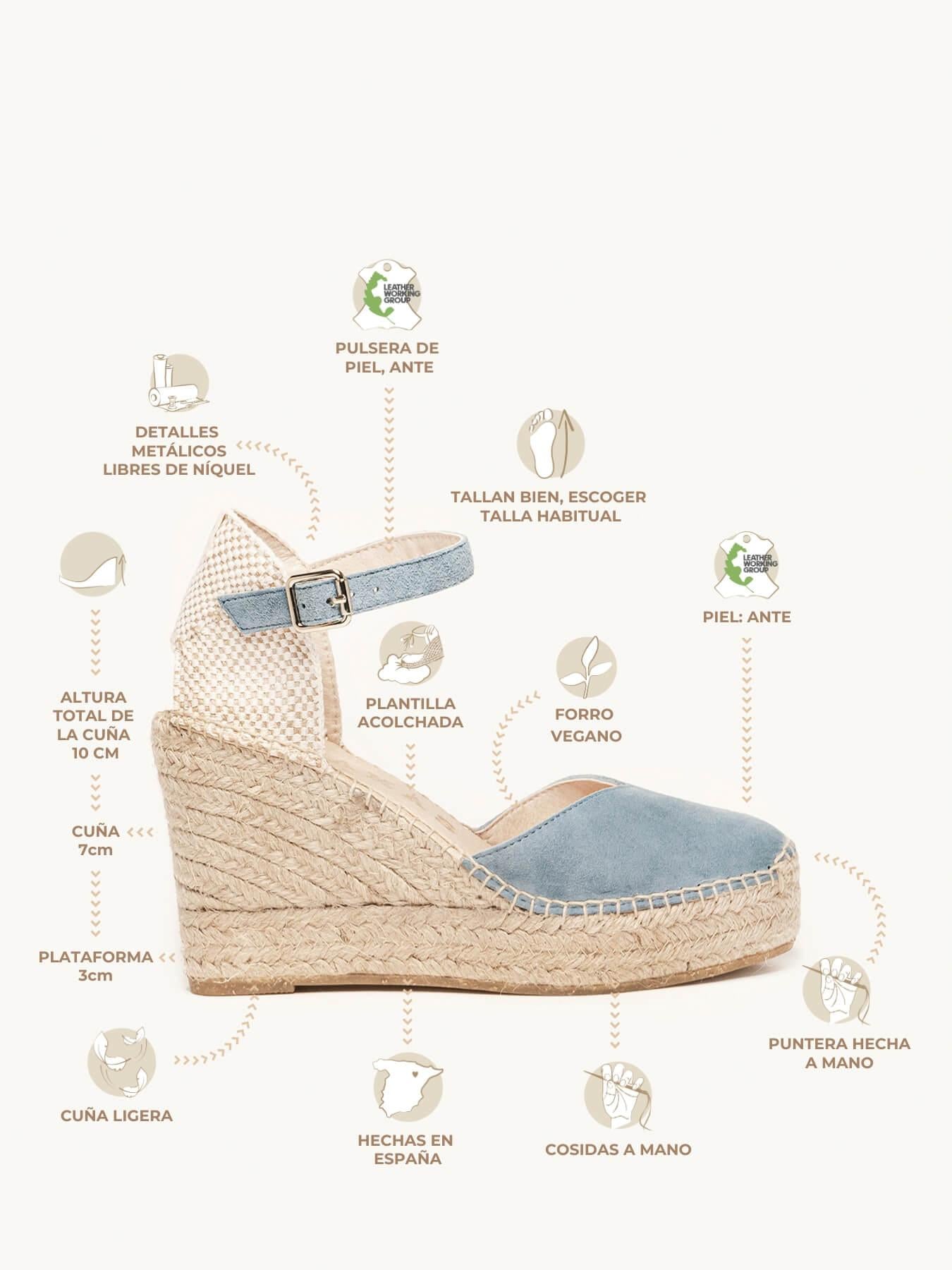 - El Ante de la alpargata Jara está certificado por el Leather Working Group (una organización que promueve prácticas ambientales sostenibles)