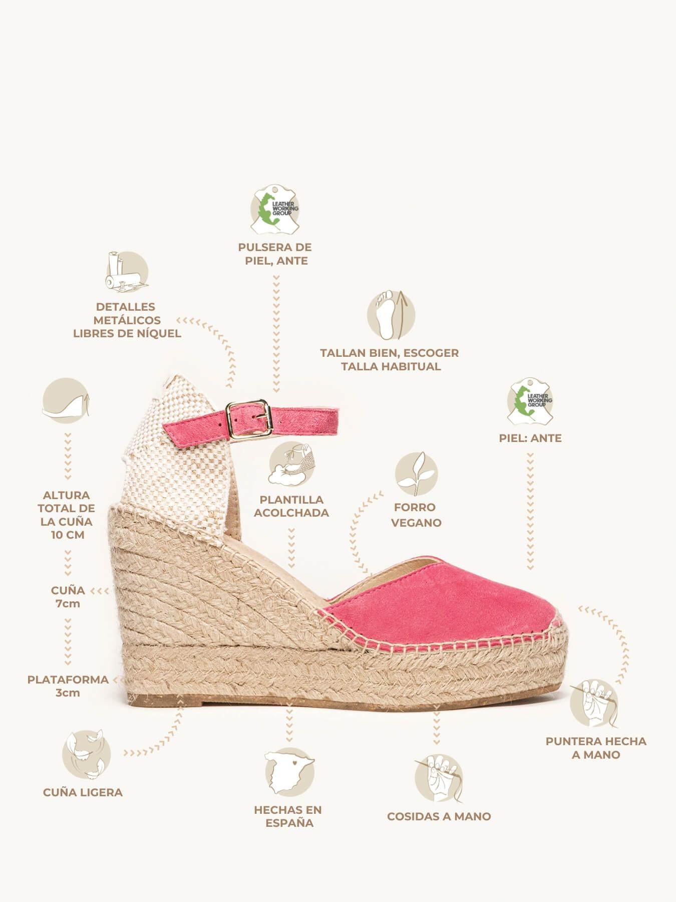 Alpargata Cuña Alta: 10 cm totales (3 de plataforma + 7 de cuña).