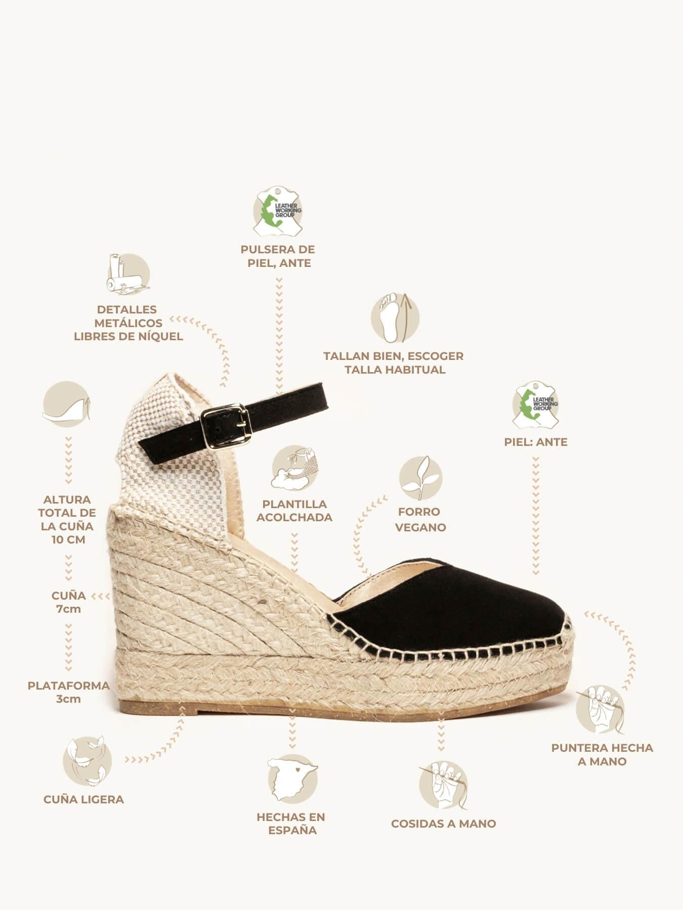 Alpargata Cuña Alta: 10 cm totales (3 de plataforma + 7 de cuña).
