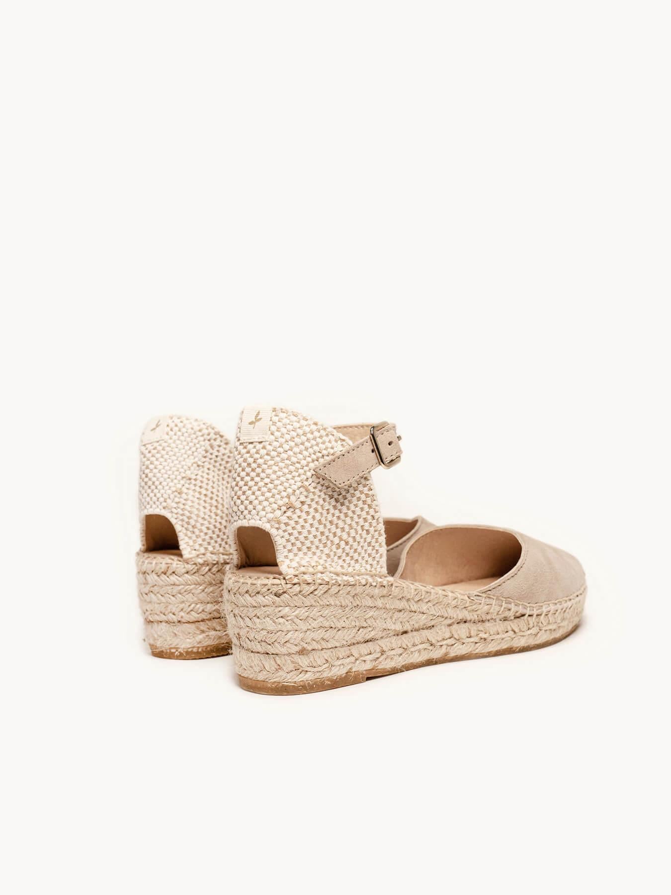 - Cuña de trenza de Yute natural con suela de goma reciclada, mezclada con fibras naturales.