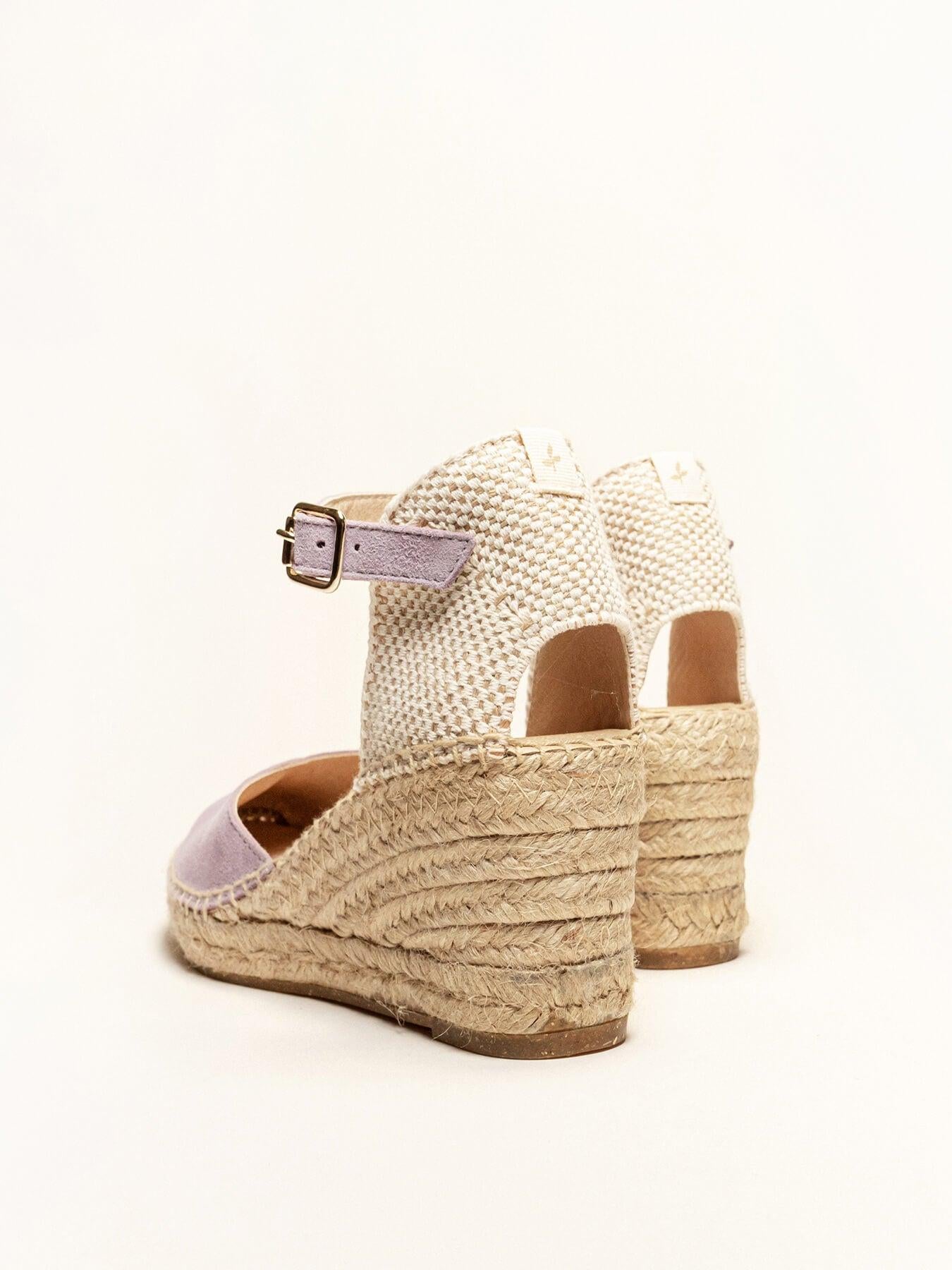- Cuña de trenza de yute natural con suela de goma reciclada, mezclada con fibras naturales
