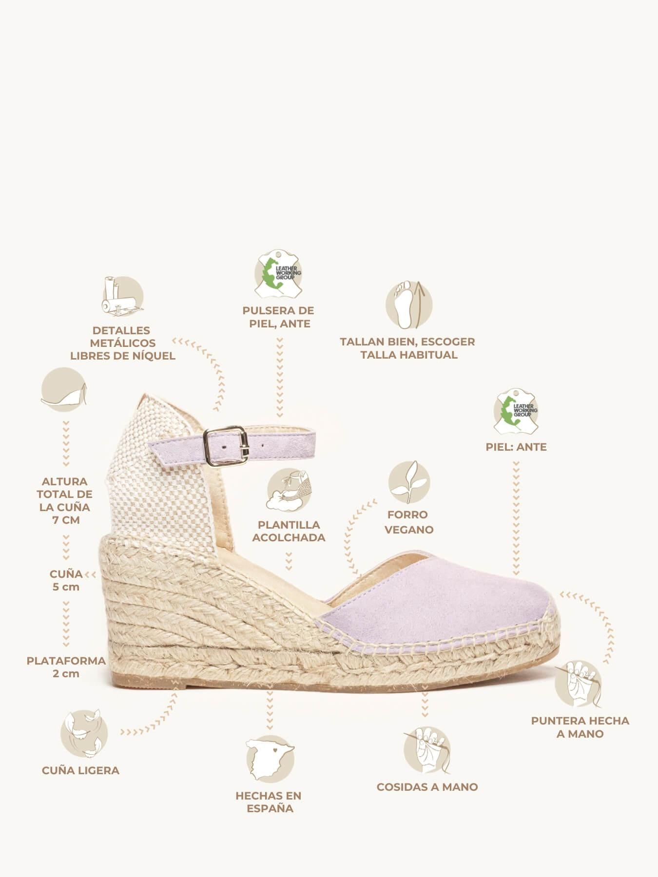 - El ante de la alpargata Jara está certificado por el Leather Working Group (una organización que promueve prácticas ambientales sostenibles)