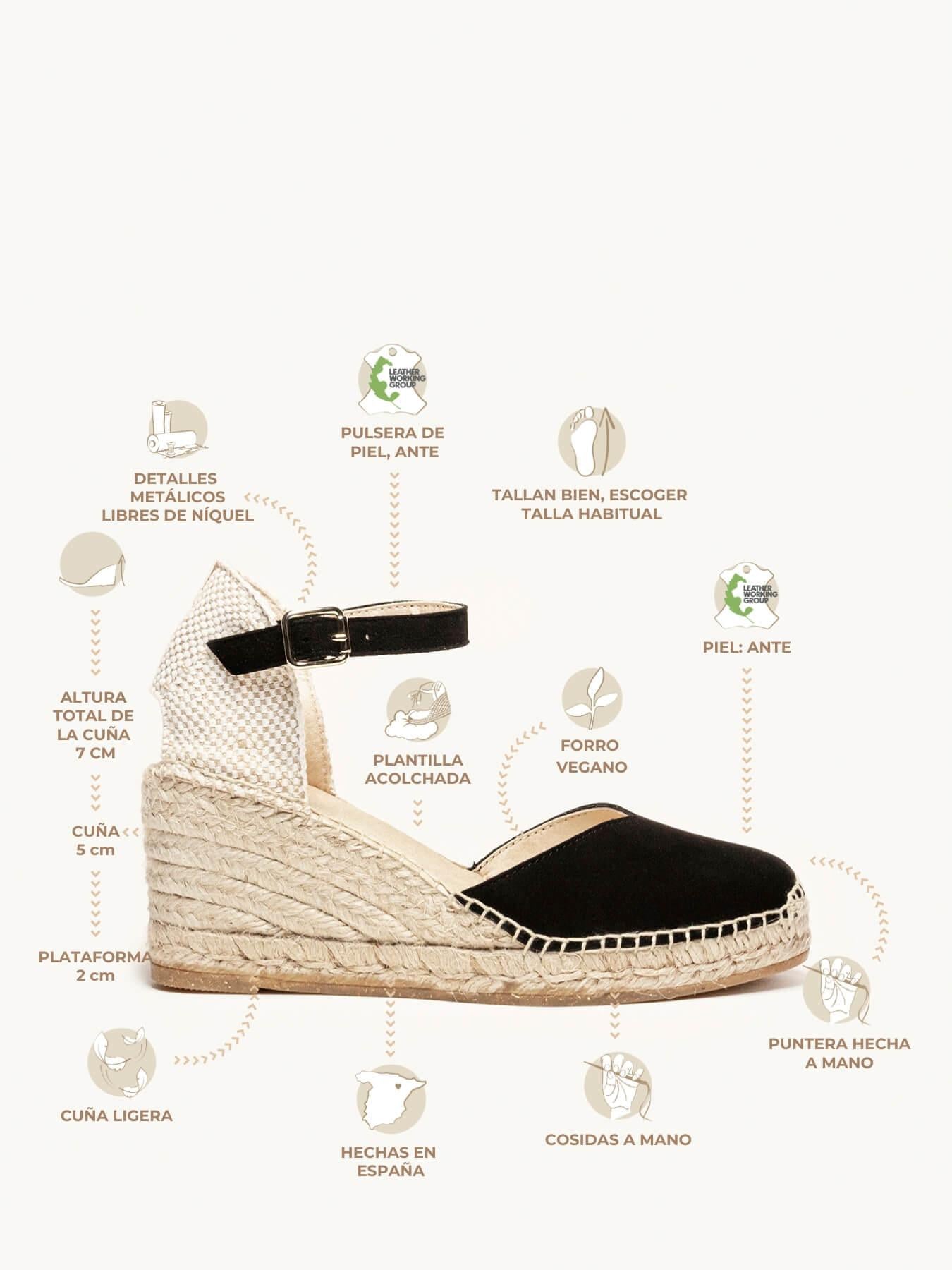 - El ante de la alpargata Jara está certificado por el Leather Working Group (una organización que promueve prácticas ambientales sostenibles)
