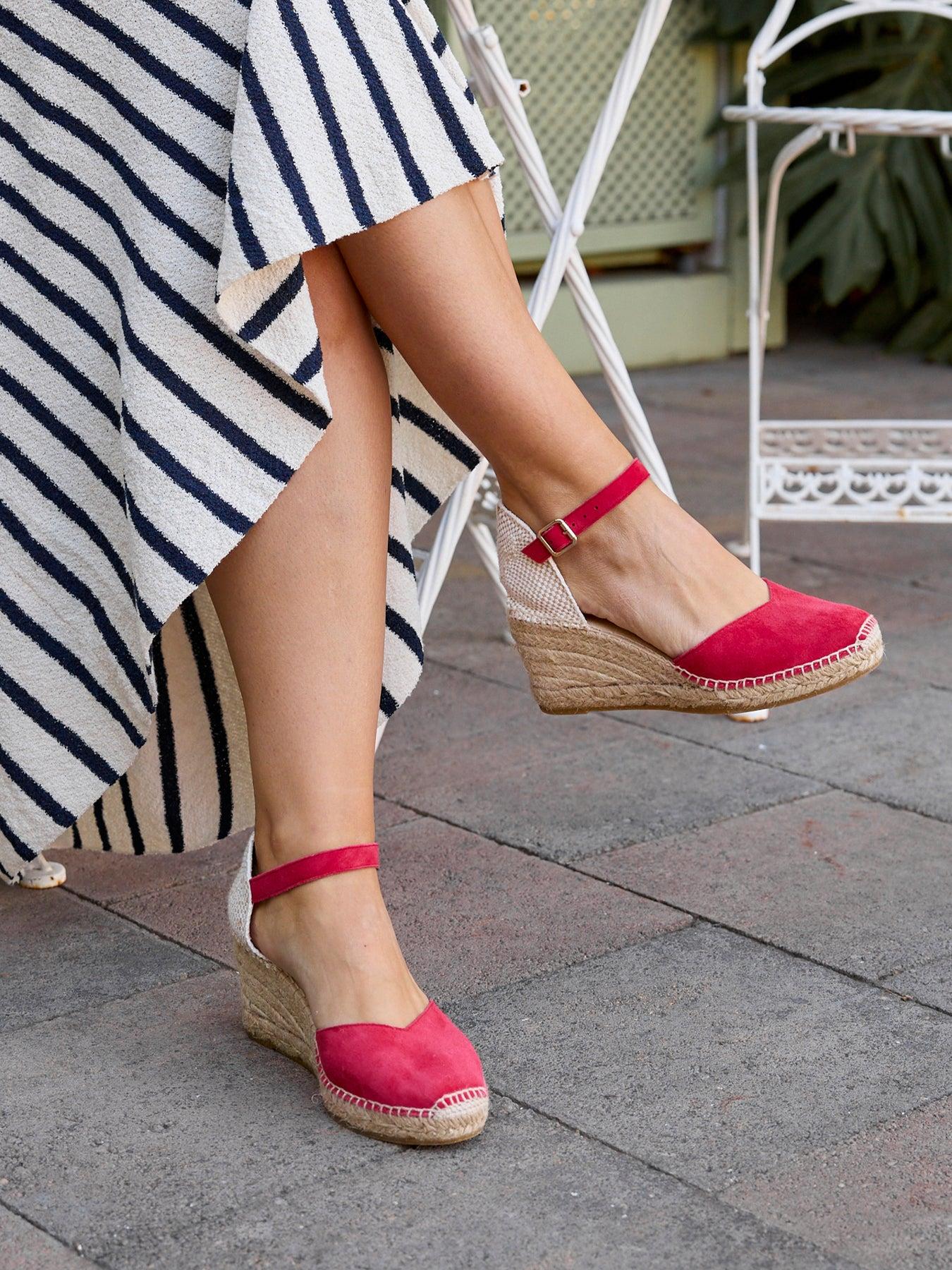 La alpargata de cuña media con pulsera Jara, es uno de nuestros favoritos. Una alpargata con pulsera y escote corazón muy versátil, ideal para el día a día y también para darle un toque muy chic a los looks más especiales. Las alpargatas con cuña y pulsera se sujetan muy bien al tobillo, irás súper cómoda durante todo el día.