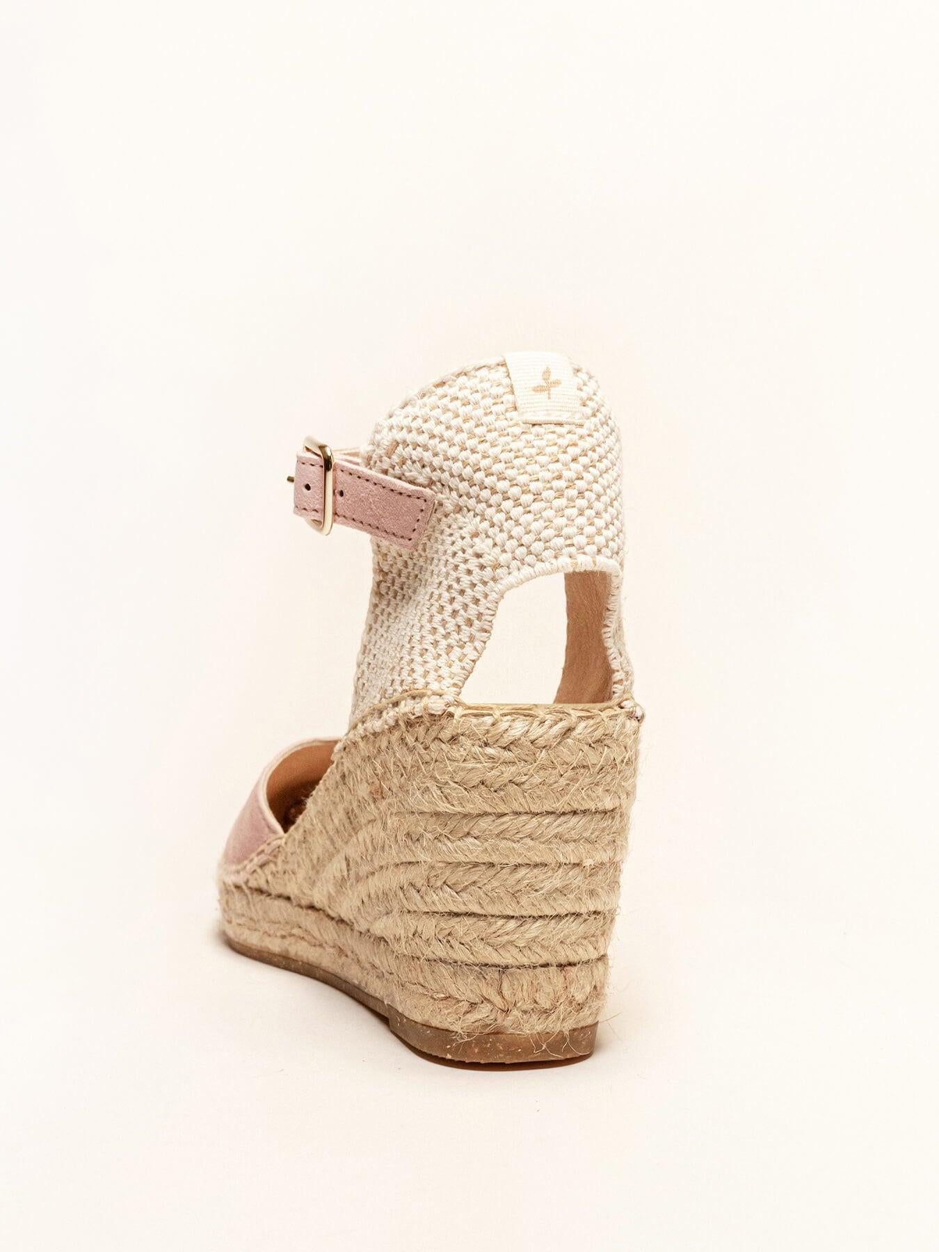- Cuña de trenza de yute natural con suela de goma reciclada, mezclada con fibras naturales