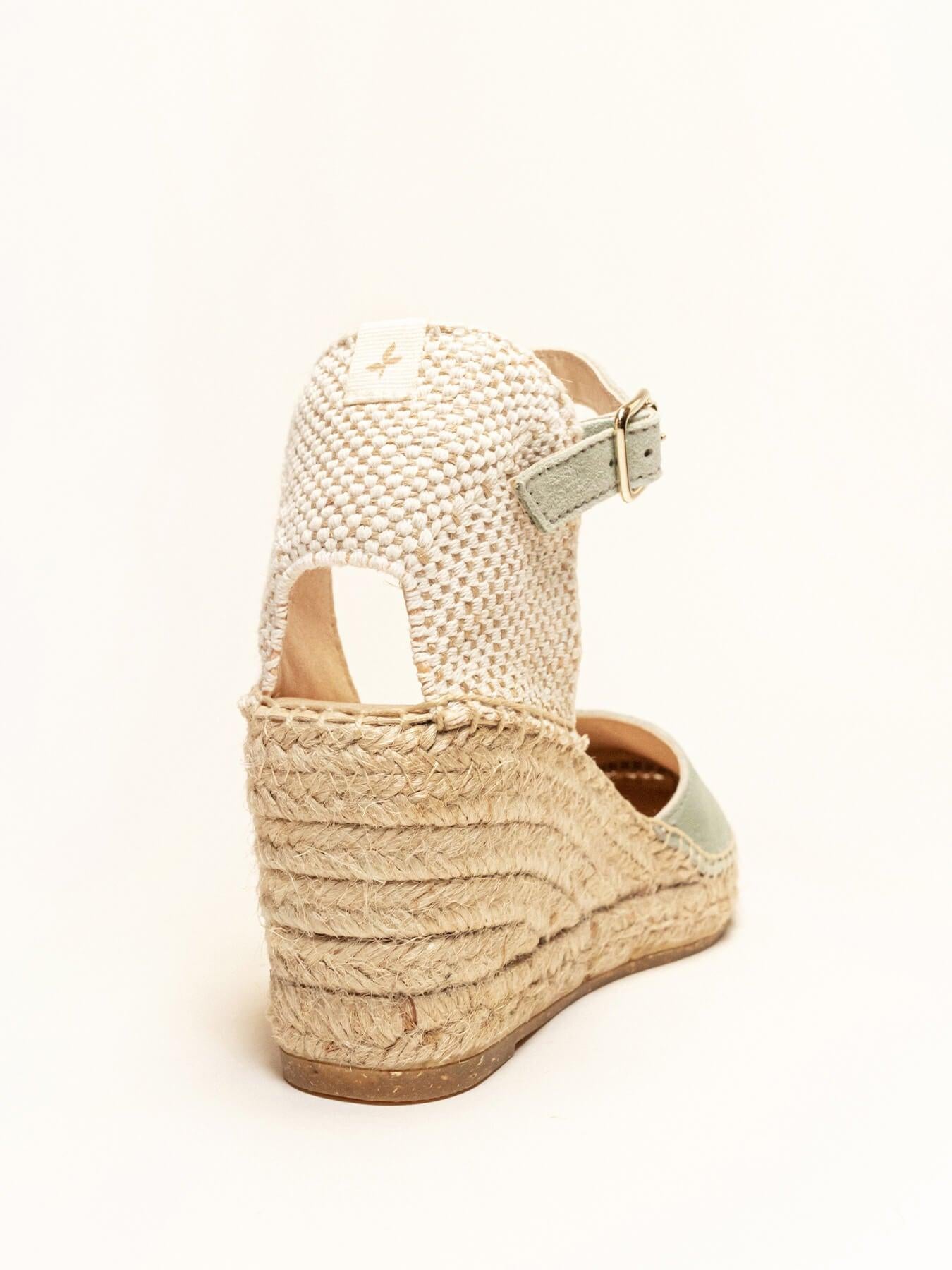 - Cuña de trenza de Yute natural con suela de goma reciclada, mezclada con fibras naturales.