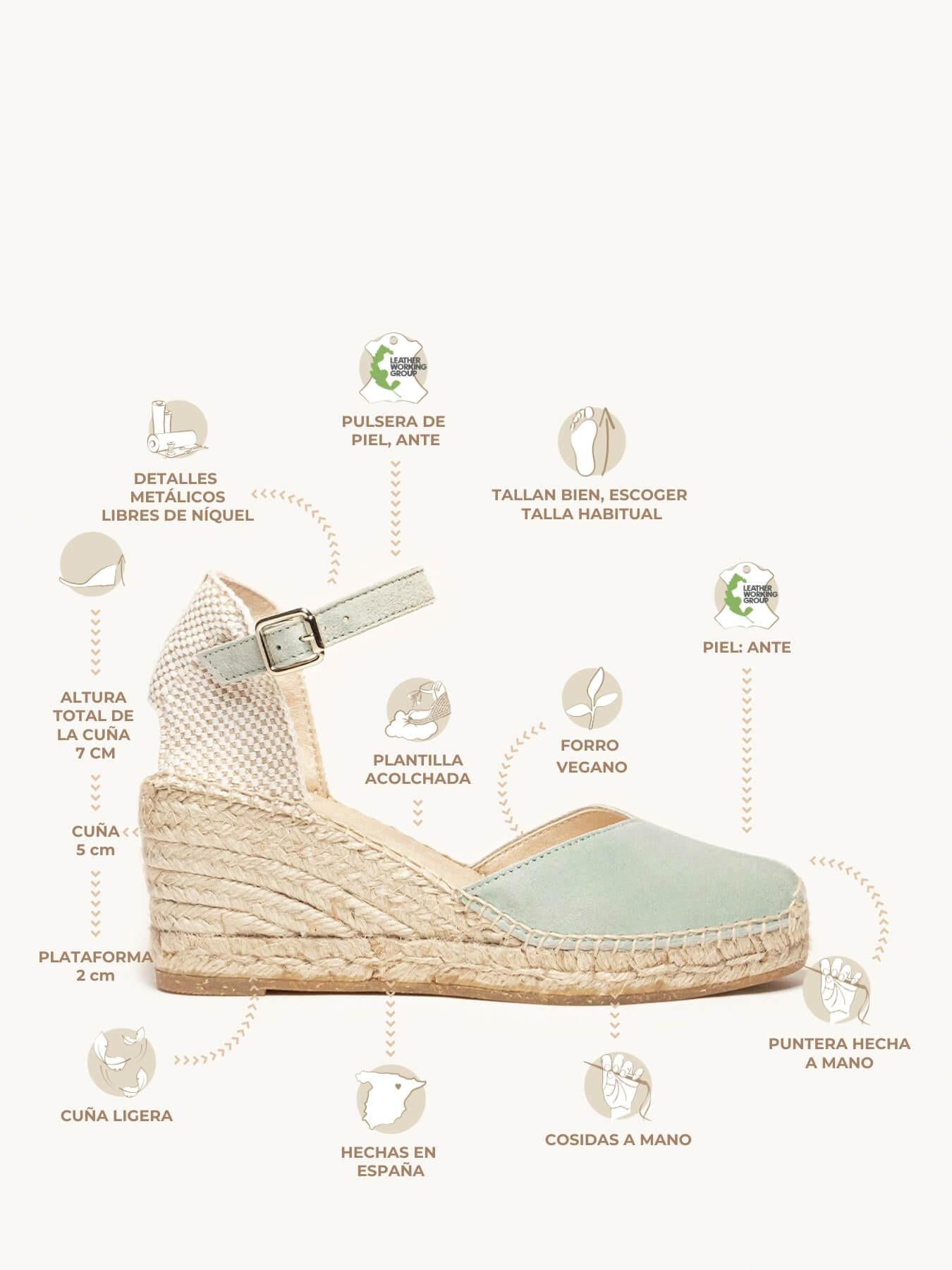 - El Ante de la alpargata Jara está certificado por el Leather Working Group (una organización que promueve prácticas ambientales sostenibles)