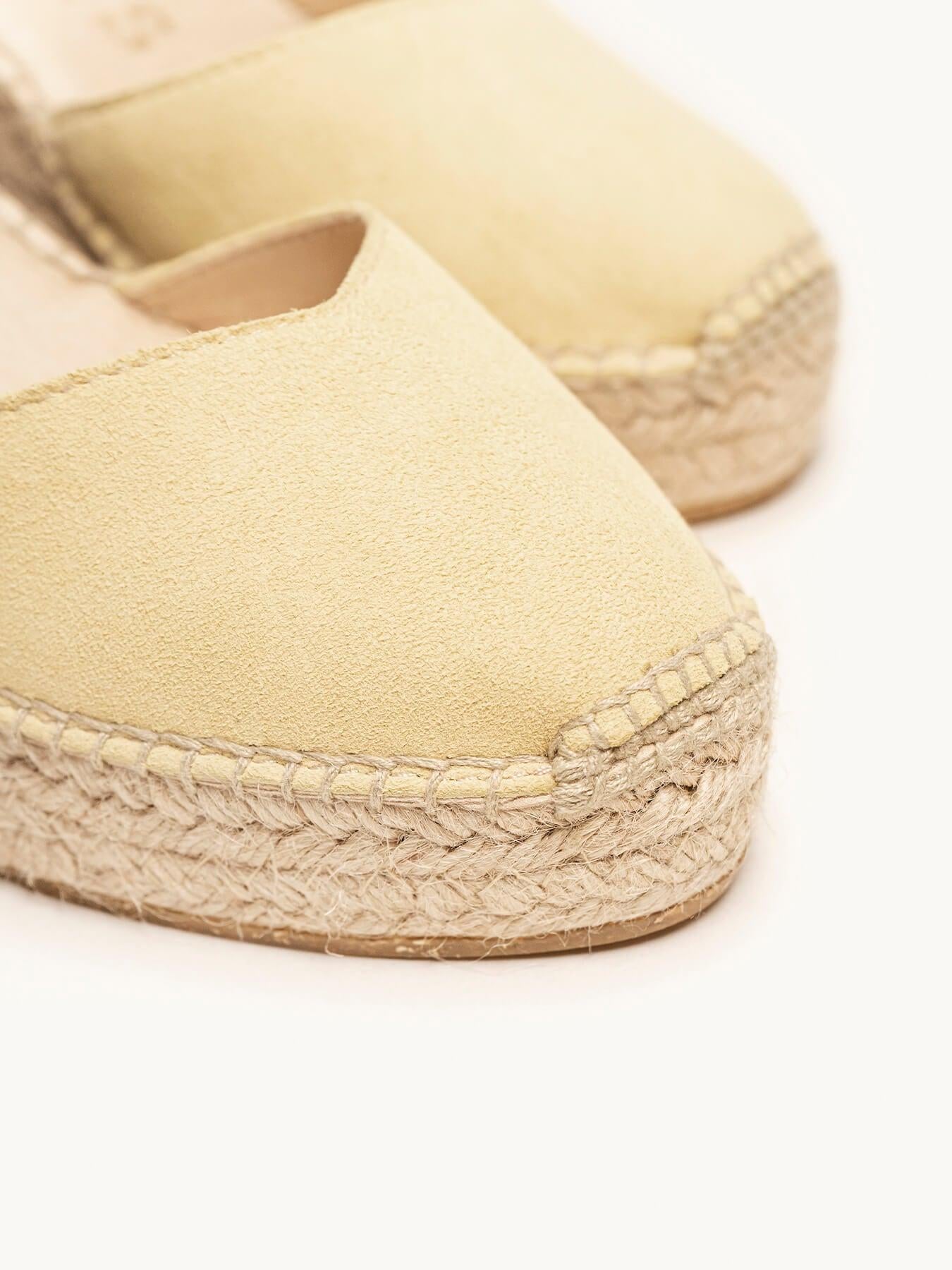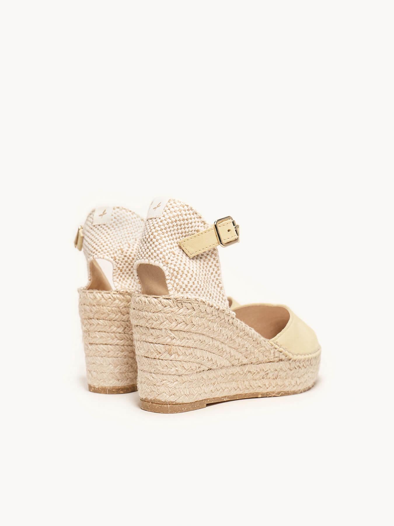 - Cuña de trenza de Yute natural con suela de goma reciclada, mezclada con fibras naturales.