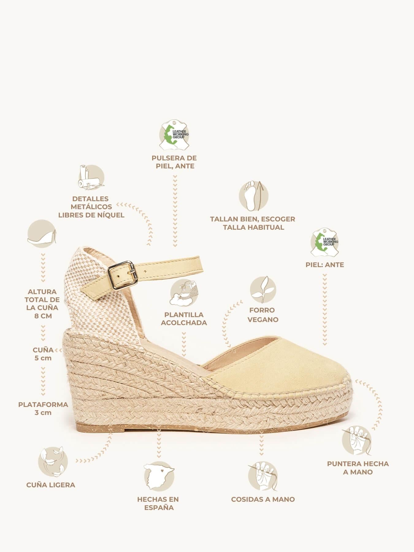 - El Ante de la alpargata Jara está certificado por el Leather Working Group (una organización que promueve prácticas ambientales sostenibles)