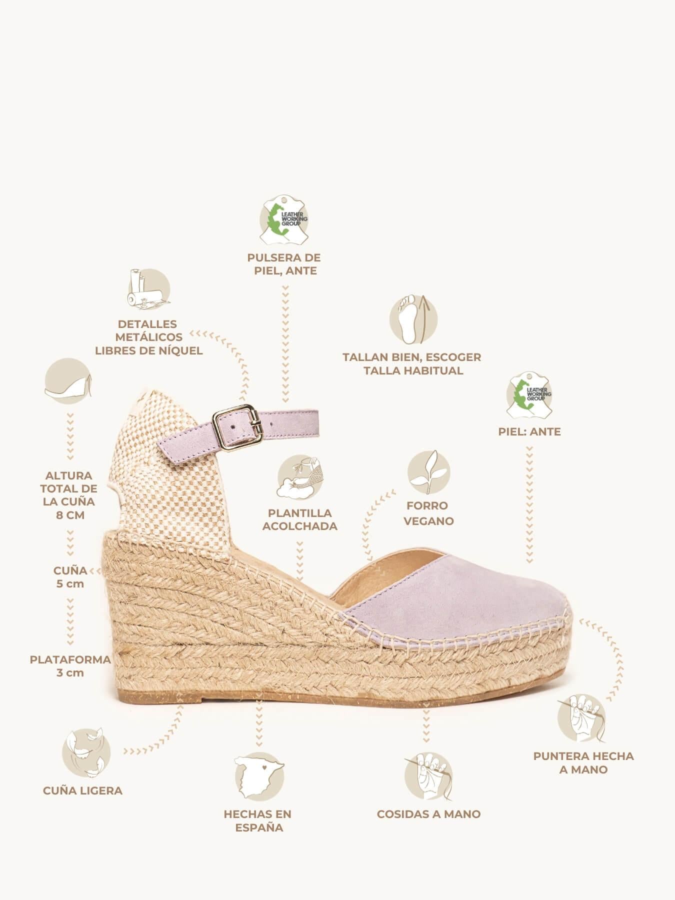 - El Ante de la alpargata Jara está certificado por el Leather Working Group (una organización que promueve prácticas ambientales sostenibles)