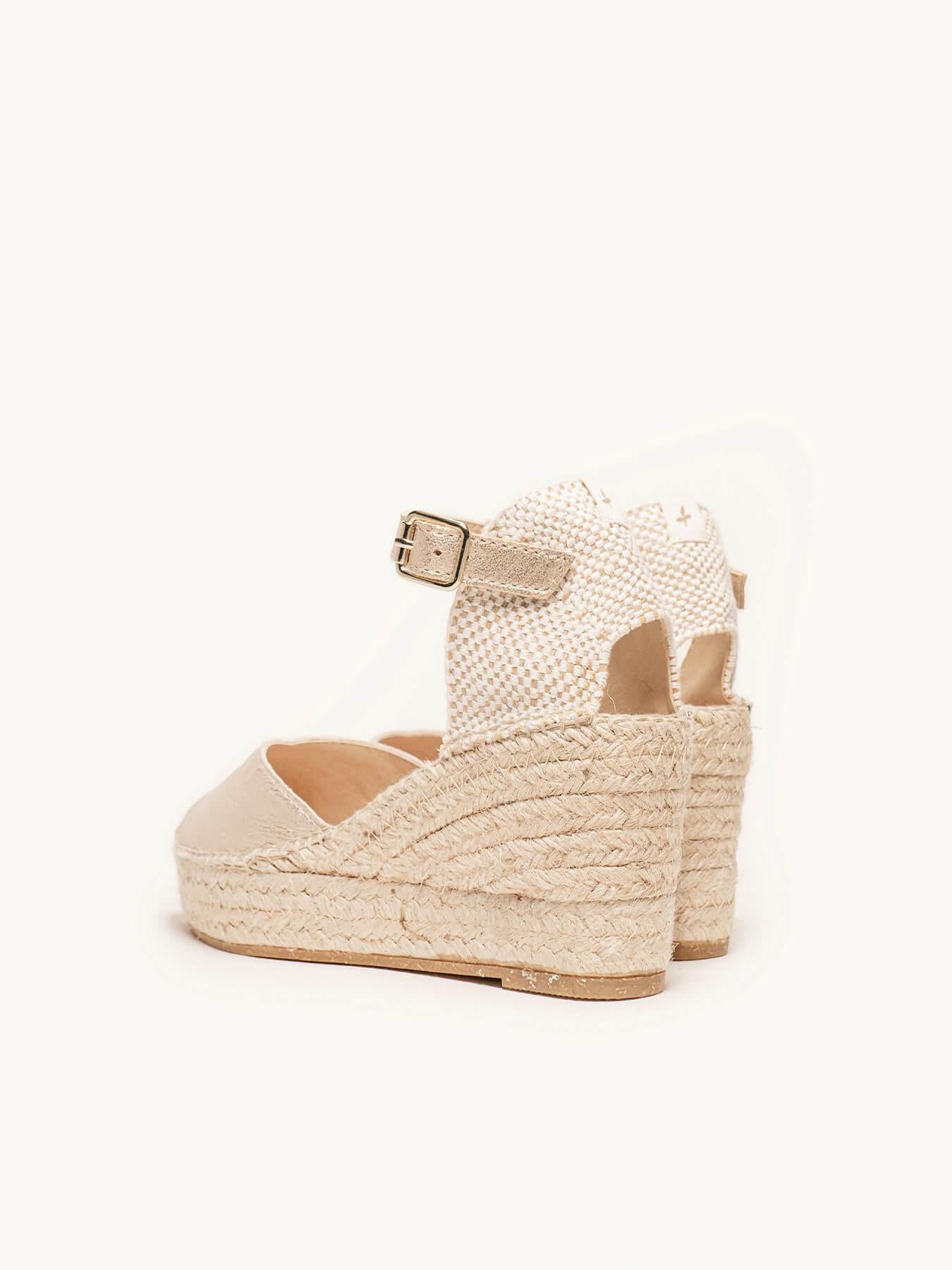 - Cuña de trenza de Yute natural con suela de goma reciclada, mezclada con fibras naturales.