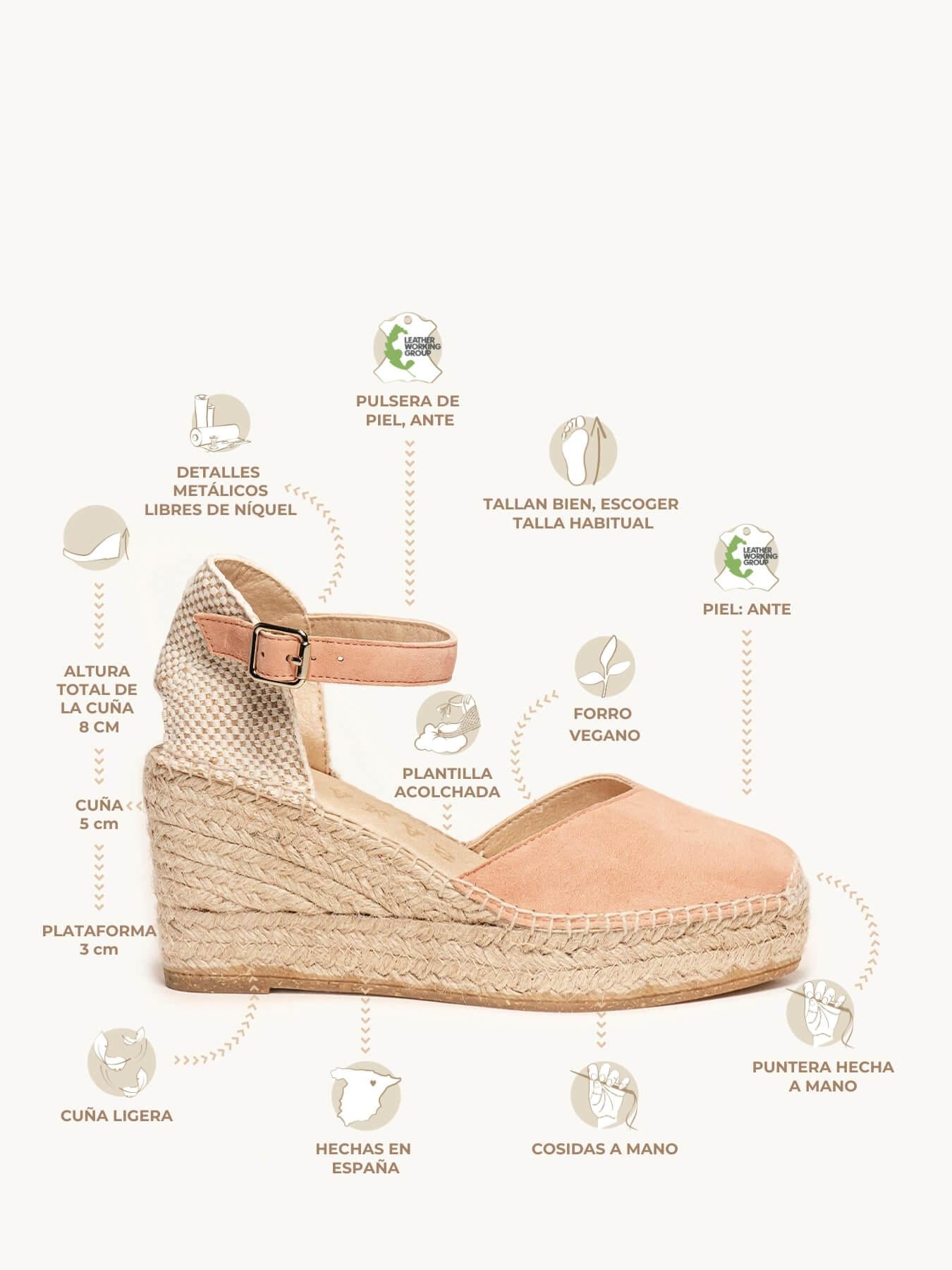 - El Ante de la alpargata Jara está certificado por el Leather Working Group (una organización que promueve prácticas ambientales sostenibles)