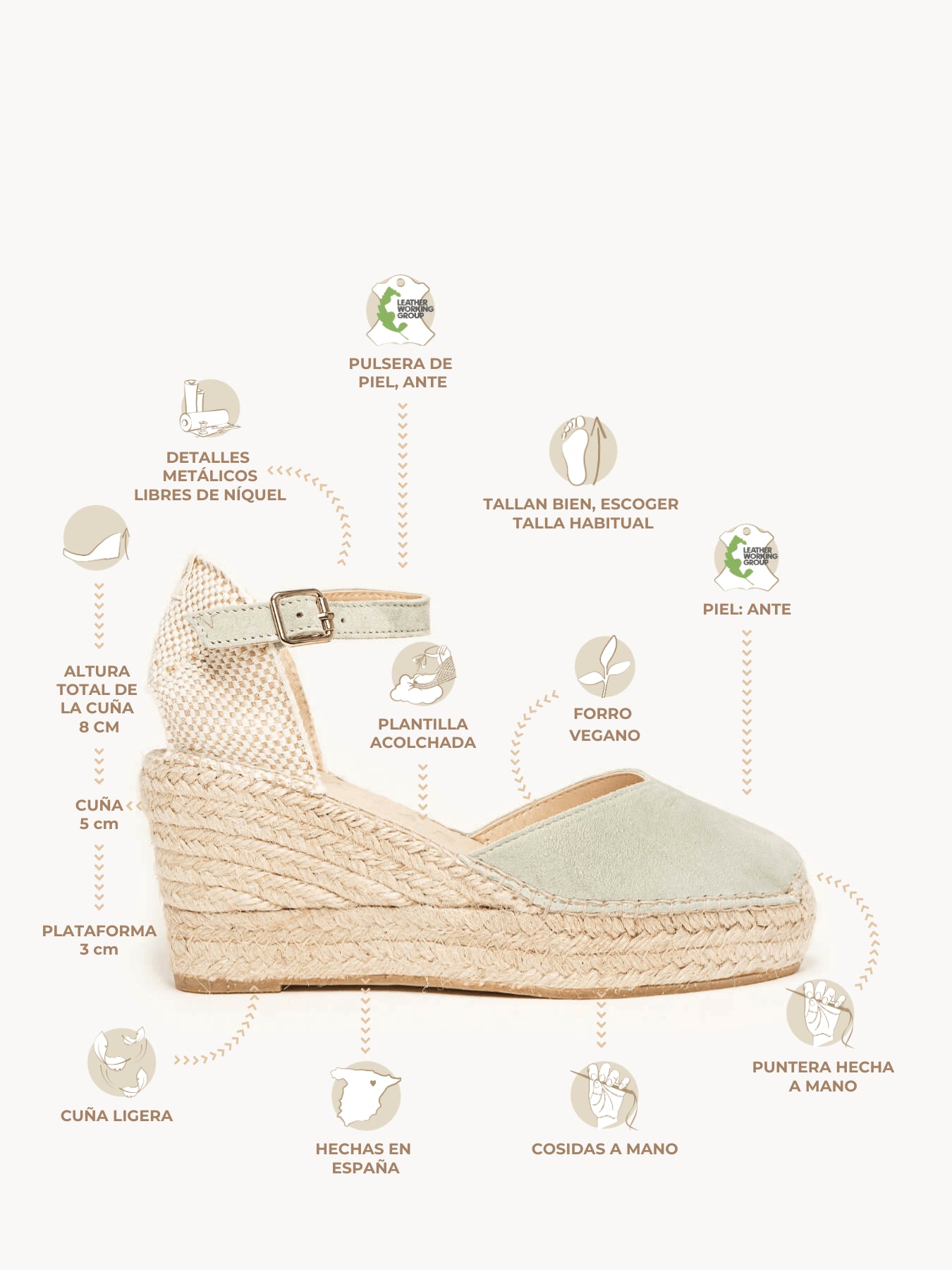 - El Ante de la alpargata Jara está certificado por el Leather Working Group (una organización que promueve prácticas ambientales sostenibles)