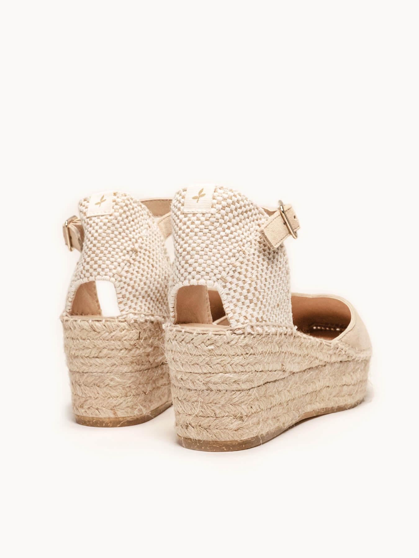 - Cuña de trenza de Yute natural con suela de goma reciclada, mezclada con fibras naturales