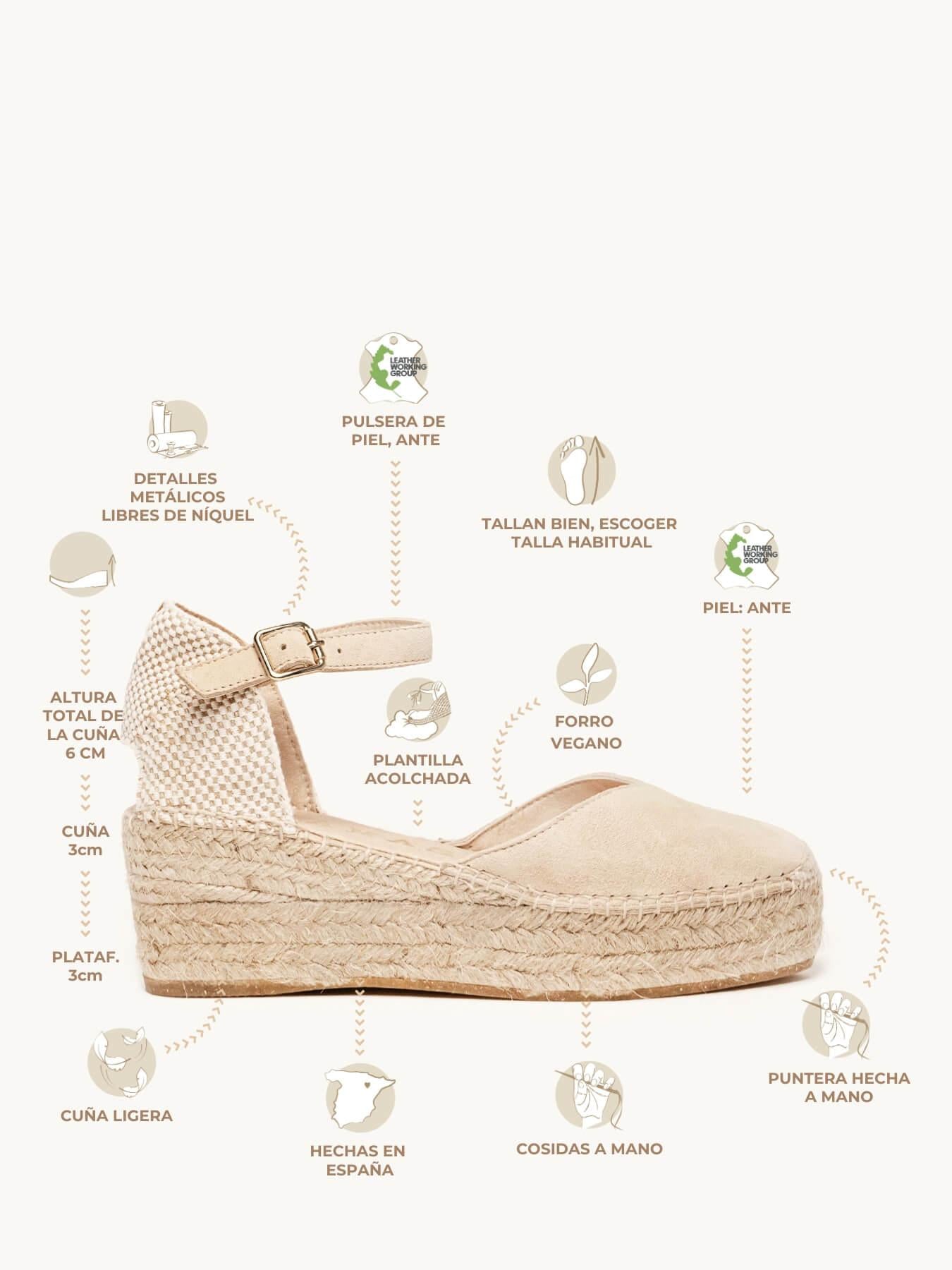 - El Ante de la alpargata Jara está certificado por el Leather Working Group (una organización que promueve prácticas ambientales sostenibles)