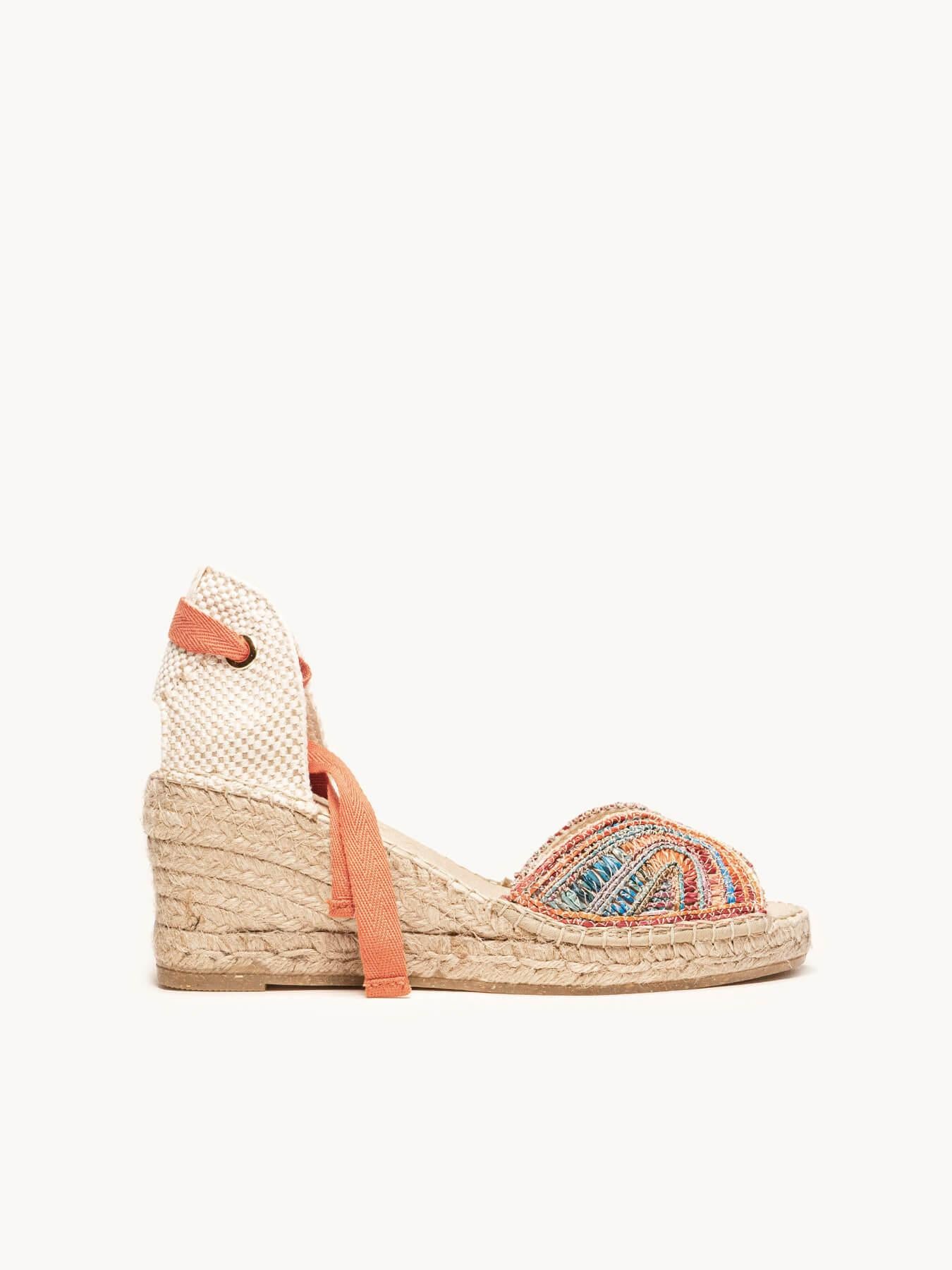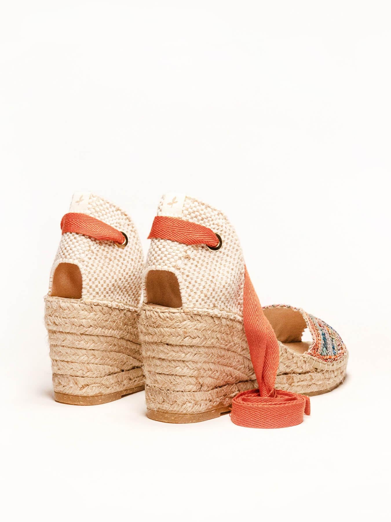 - Cuña de trenza de Yute natural con suela de goma reciclada mezclada con fibras naturales.