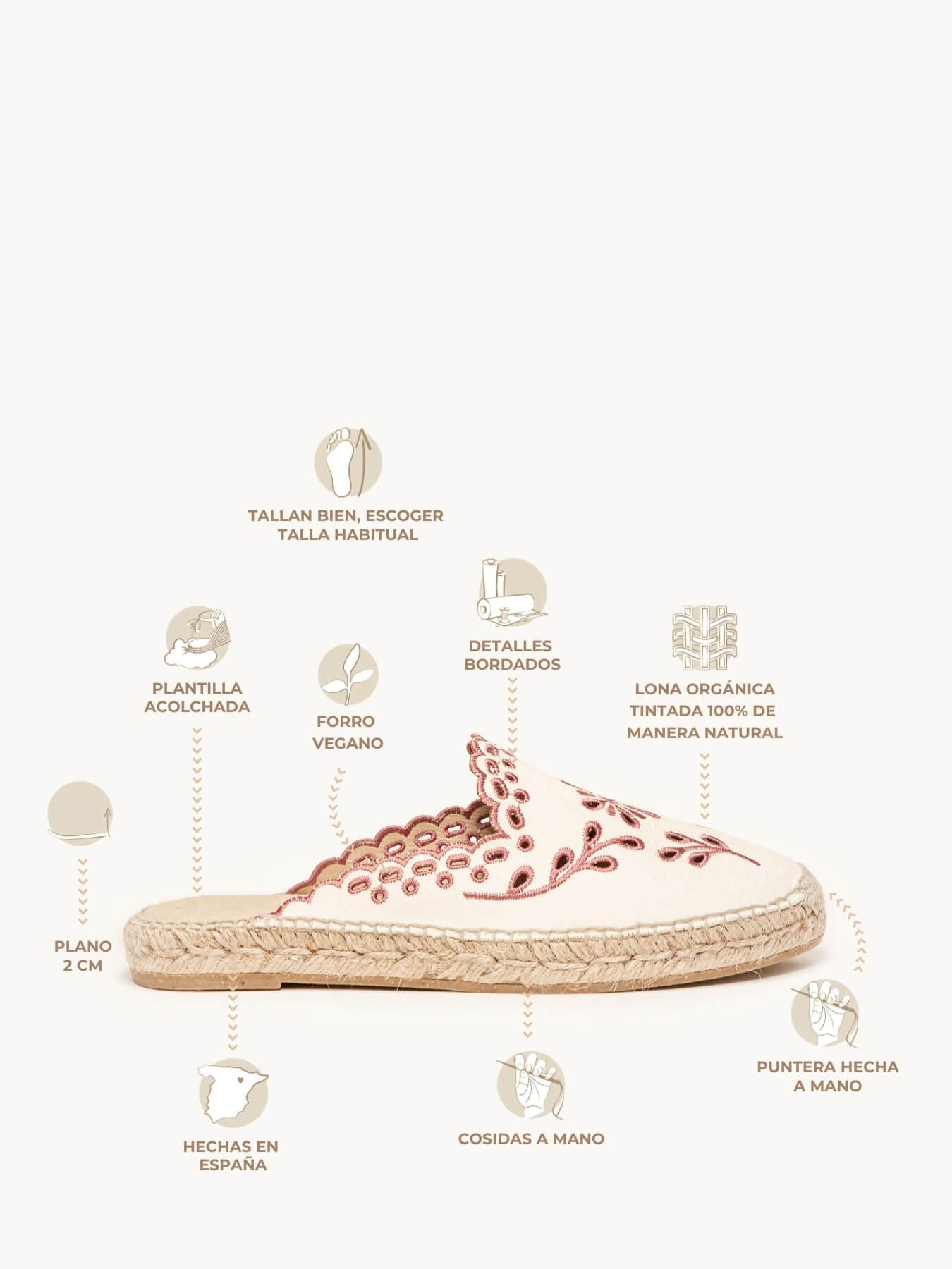 La alpargata plana Loto es nuestra babucha. Una alpargata de estilo slipper es un modelo muy versátil, ideal para el día a día y también para darle un toque muy chic a los looks más especiales. Irás súper cómoda durante todo el día y verás tu pie super estilizado.