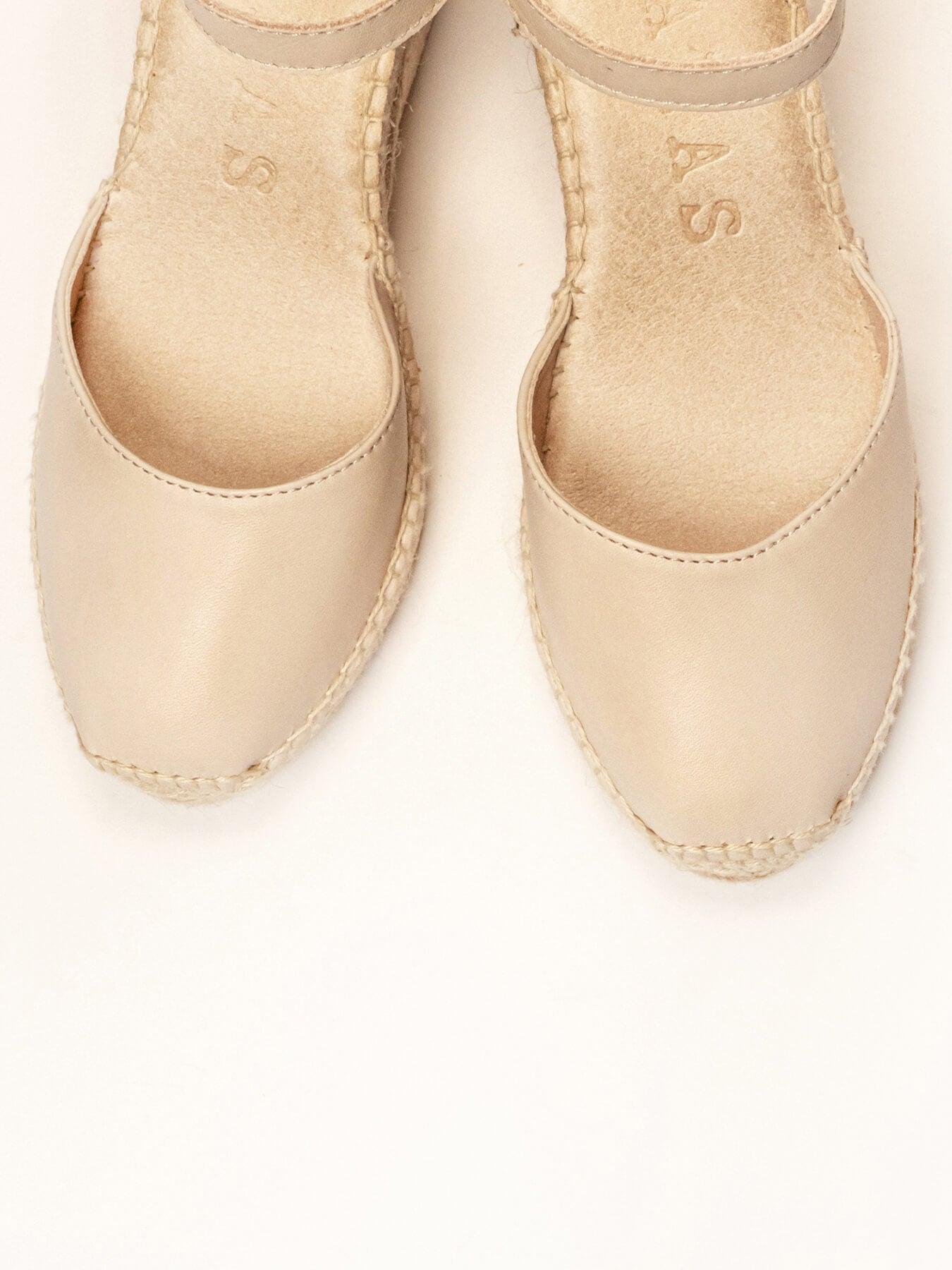 La alpargata de cuña alta Marga, es una de nuestras favoritas. Una alpargata con pulsera y escote redondo es un modelo muy versátil, ideal para el día a día y también para darle un toque muy chic a los looks más especiales. Las alpargatas con cuña y pulsera se sujetan muy bien al tobillo, irás súper cómoda durante todo el día.