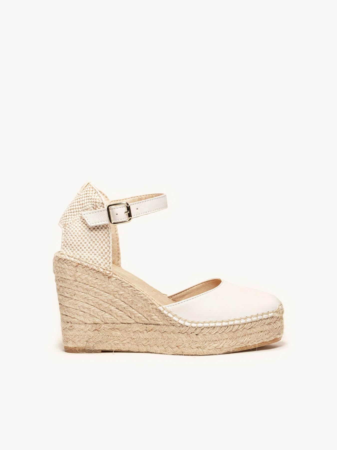 La alpargata de cuña alta Marga, es una de nuestras favoritas. Una alpargata con pulsera y escote redondo es un modelo muy versátil, ideal para el día a día y también para darle un toque muy chic a los looks más especiales. Las alpargatas con cuña y pulsera se sujetan muy bien al tobillo, irás súper cómoda durante todo el día.