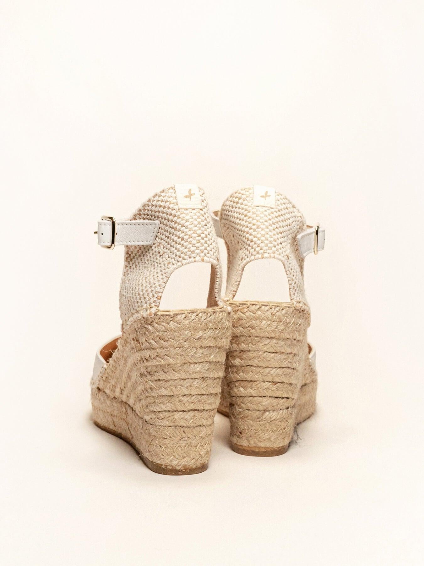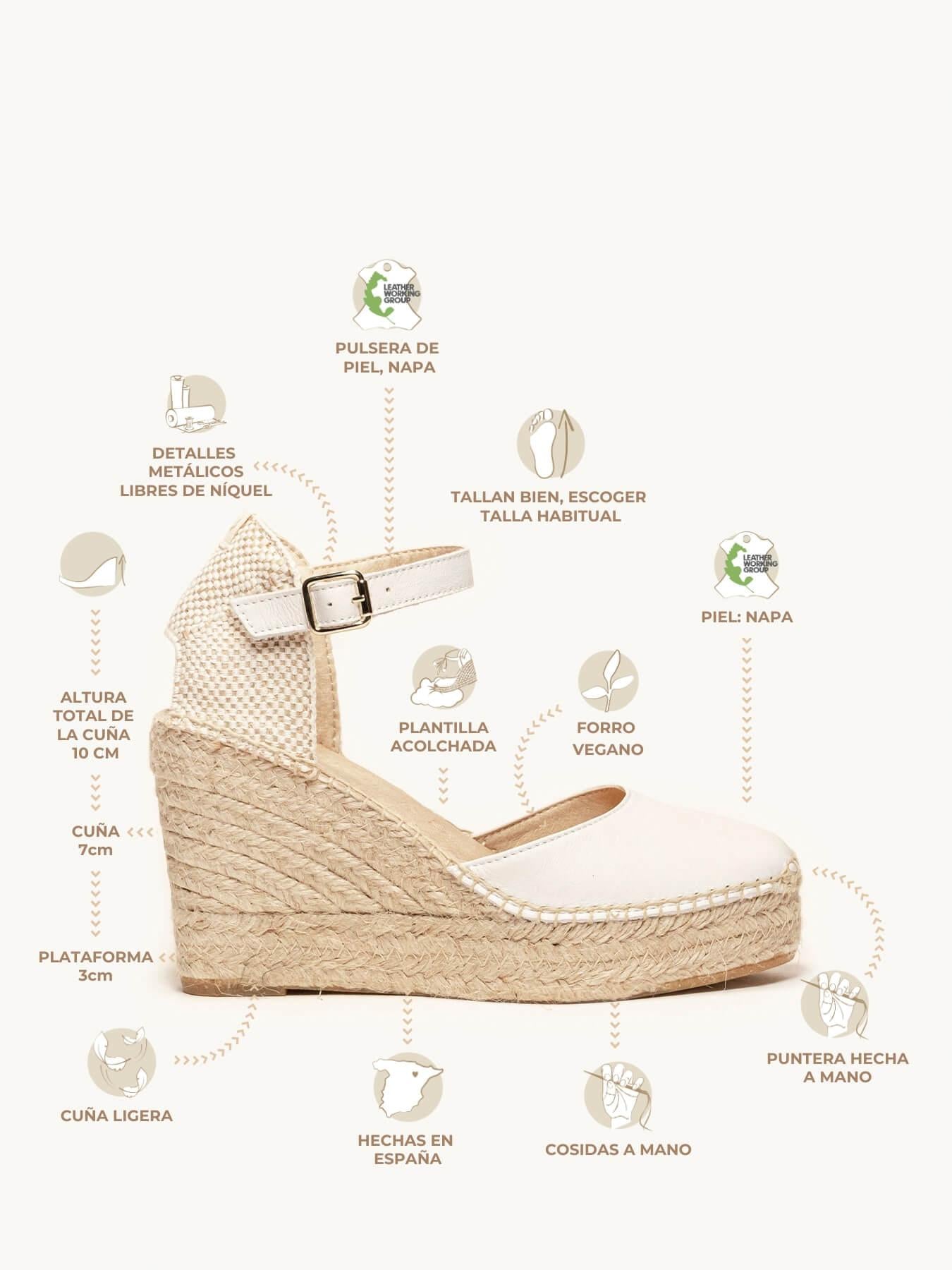 - Cuña de trenza de Yute natural con suela de goma reciclada mezclada con fibras naturales.
