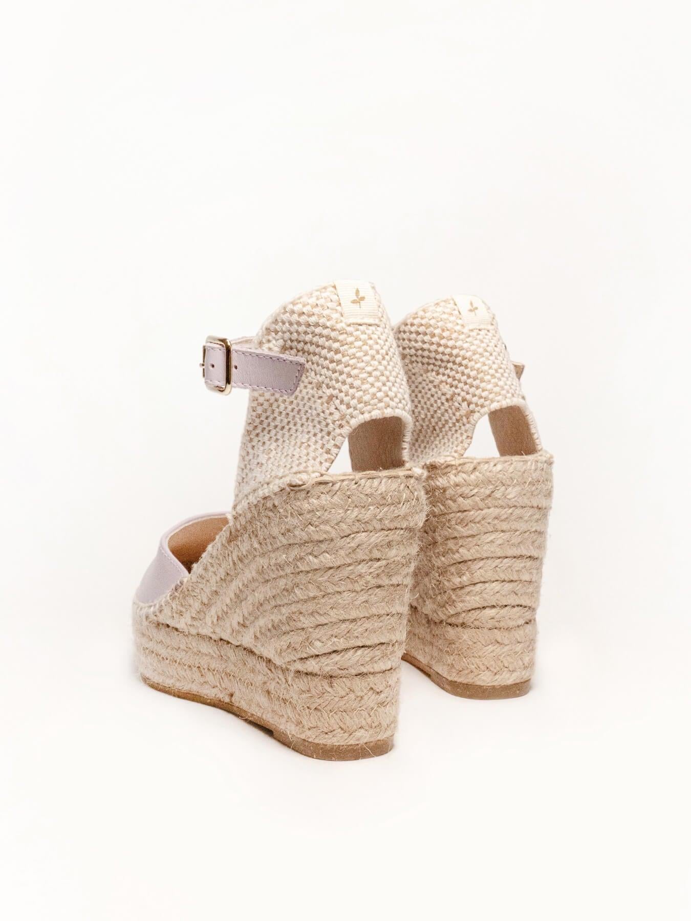 - Cuña de trenza de Yute natural con suela de goma reciclada mezclada con fibras naturales.