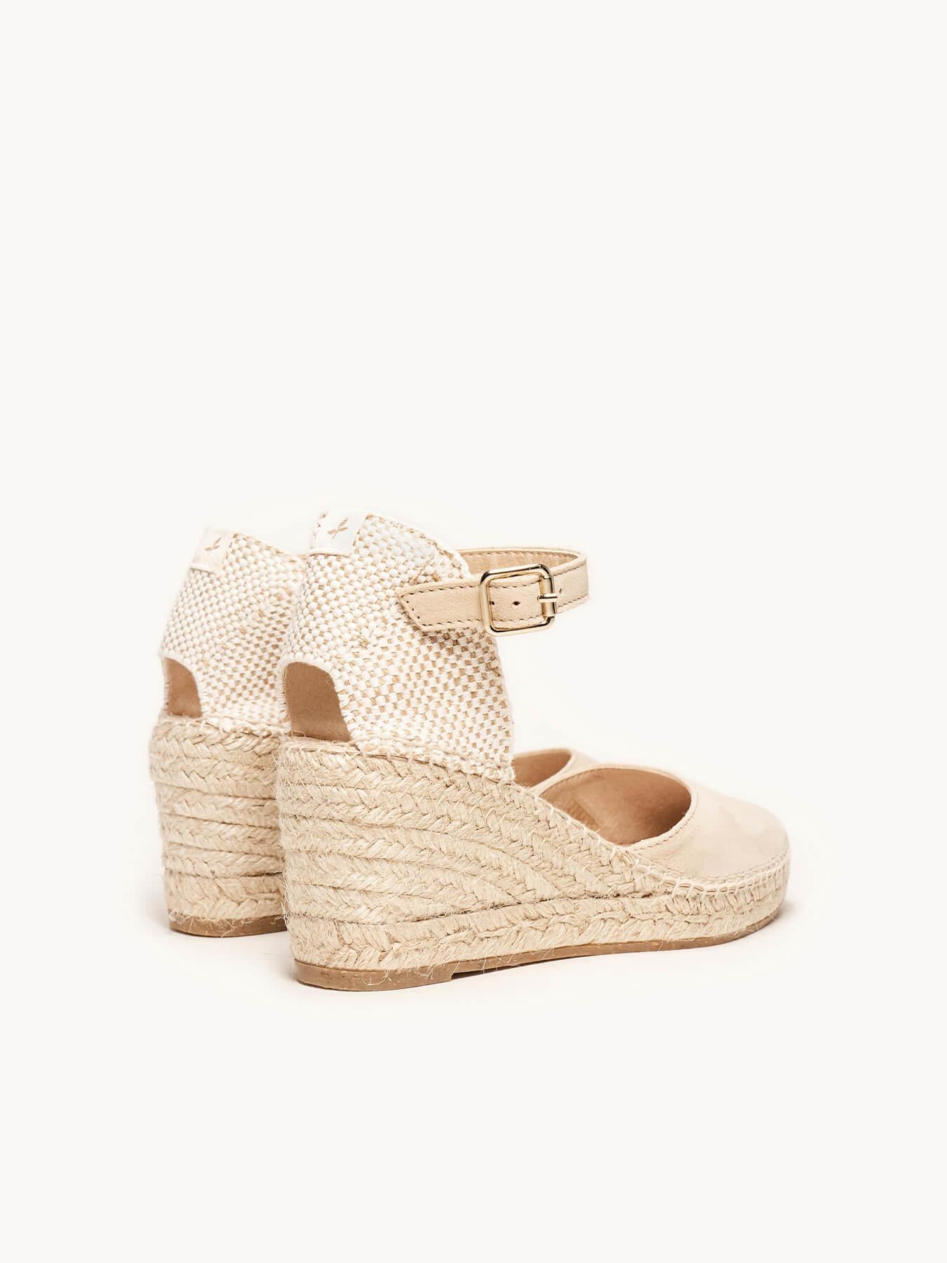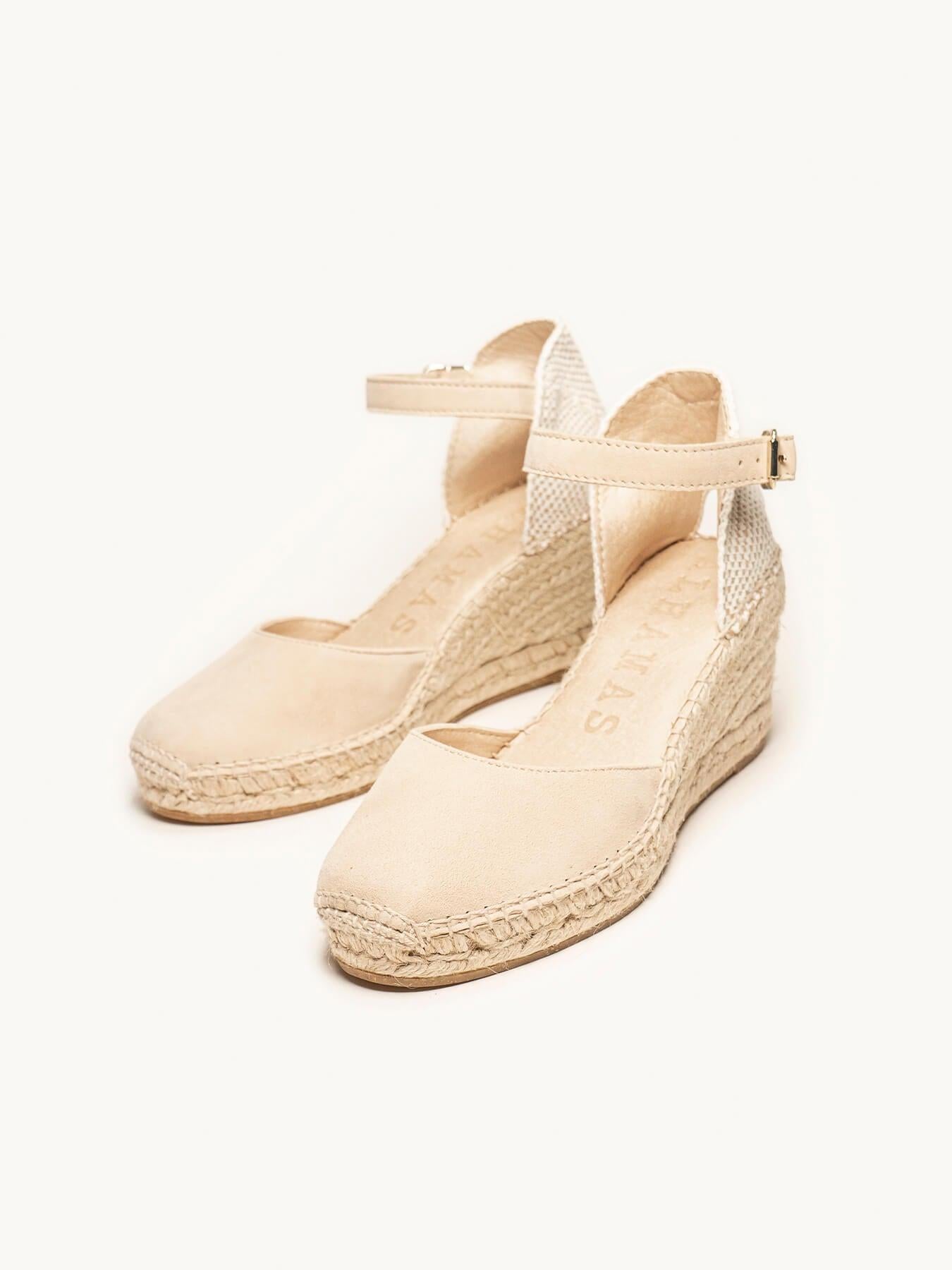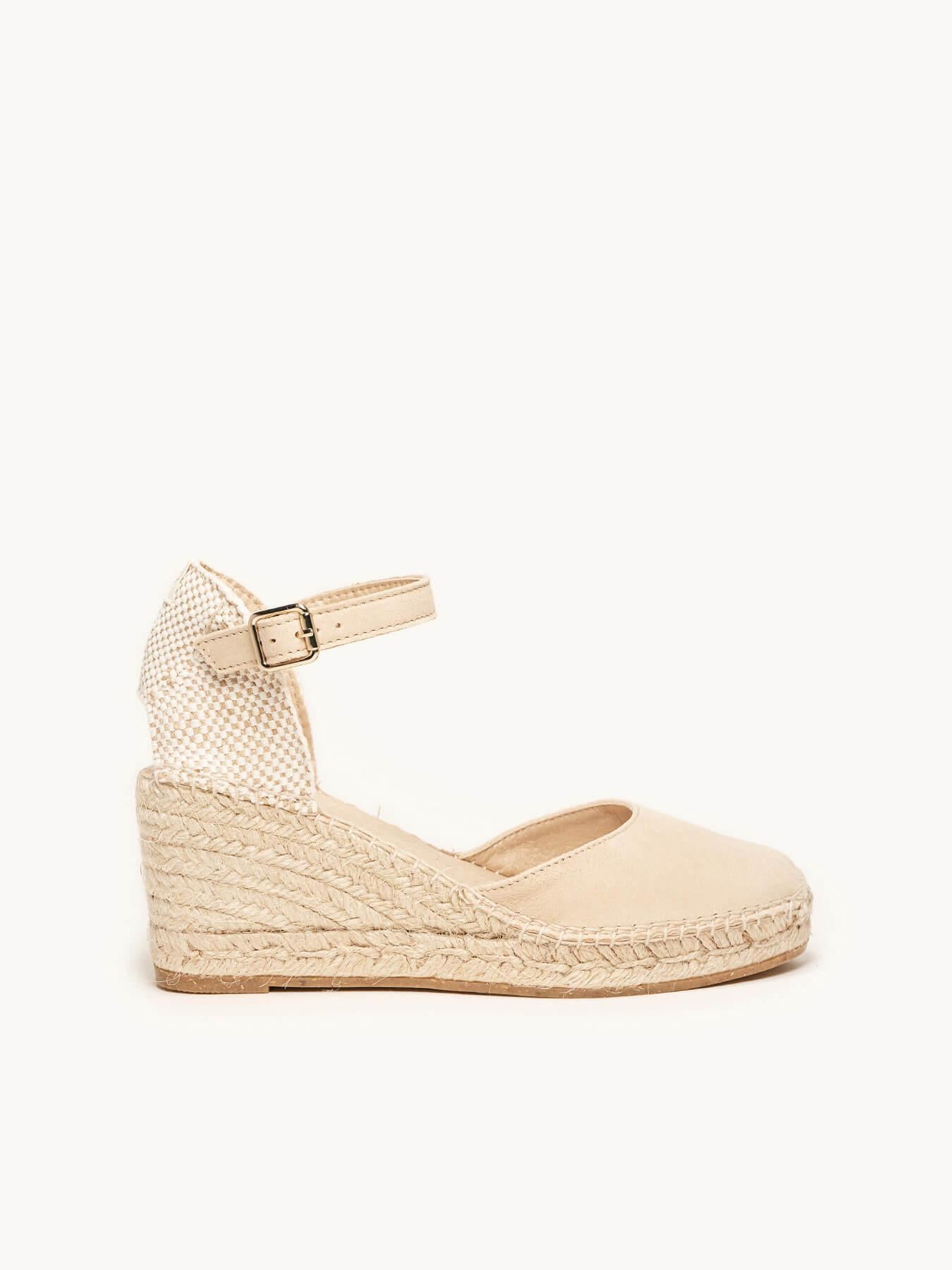 La alpargata de cuña media Marga, es una de nuestras favoritas. Una alpargata con pulsera y escote redondo es un modelo muy versátil, ideal para el día a día y también para darle un toque muy chic a los looks más especiales. Las alpargatas con cuña y pulsera se sujetan muy bien al tobillo, irás súper cómoda durante todo el día.
