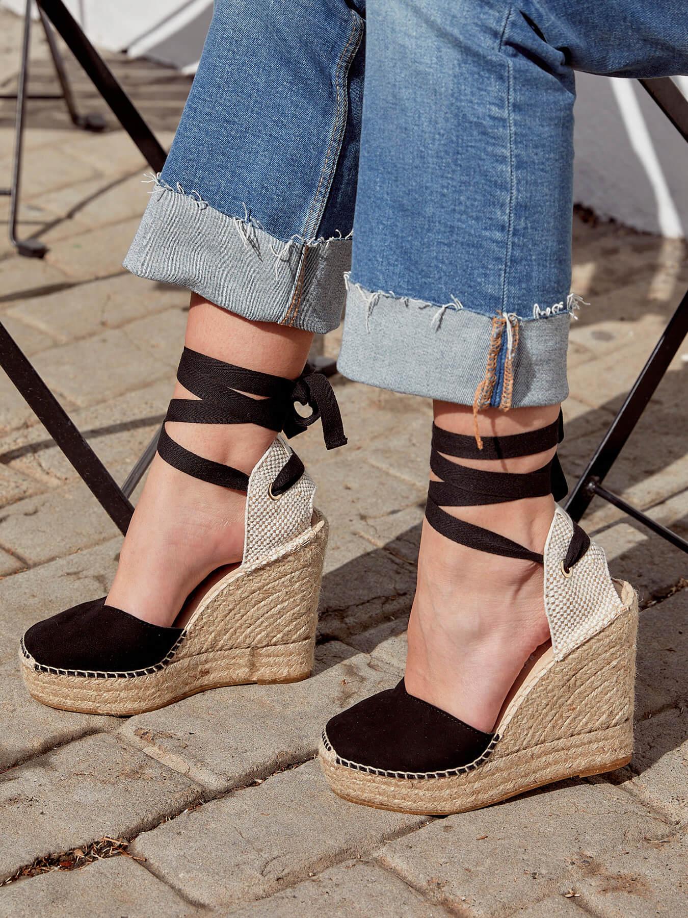 La alpargata de cuña alta Romero, es nuestro modelo más icónico. Una alpargata valenciana de escote corazón con cintas que podrás llevar con tus looks especiales y también con los del día a día. Podrás darle un toque especial porque las cintas se pueden cambiar.