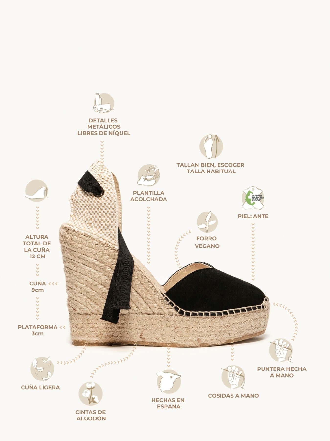 Alpargata Cuña Alta: 12 cm totales (8,5 de plataforma + 3,5 de cuña).