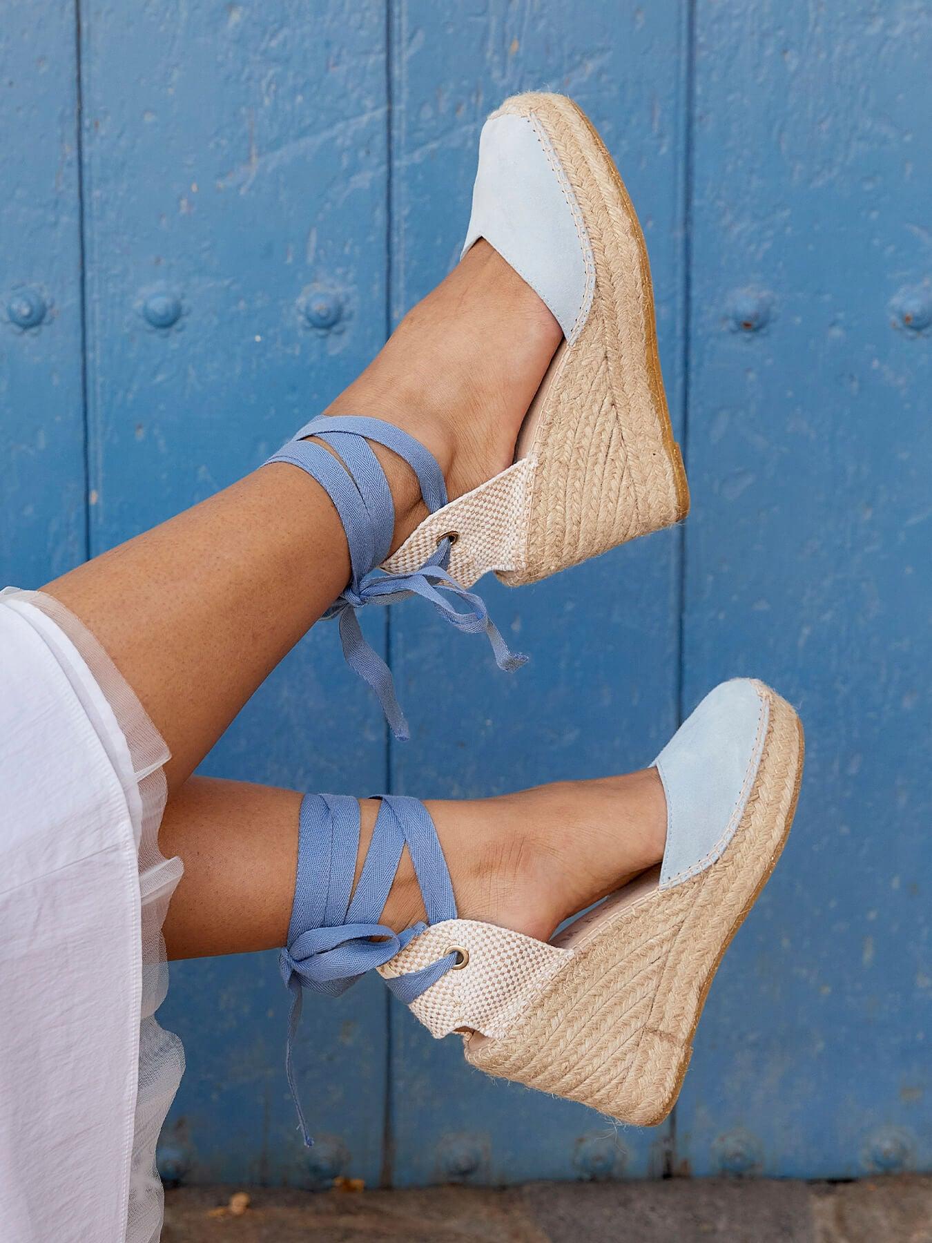 Romero Cuña Alta Ante Azul Claro