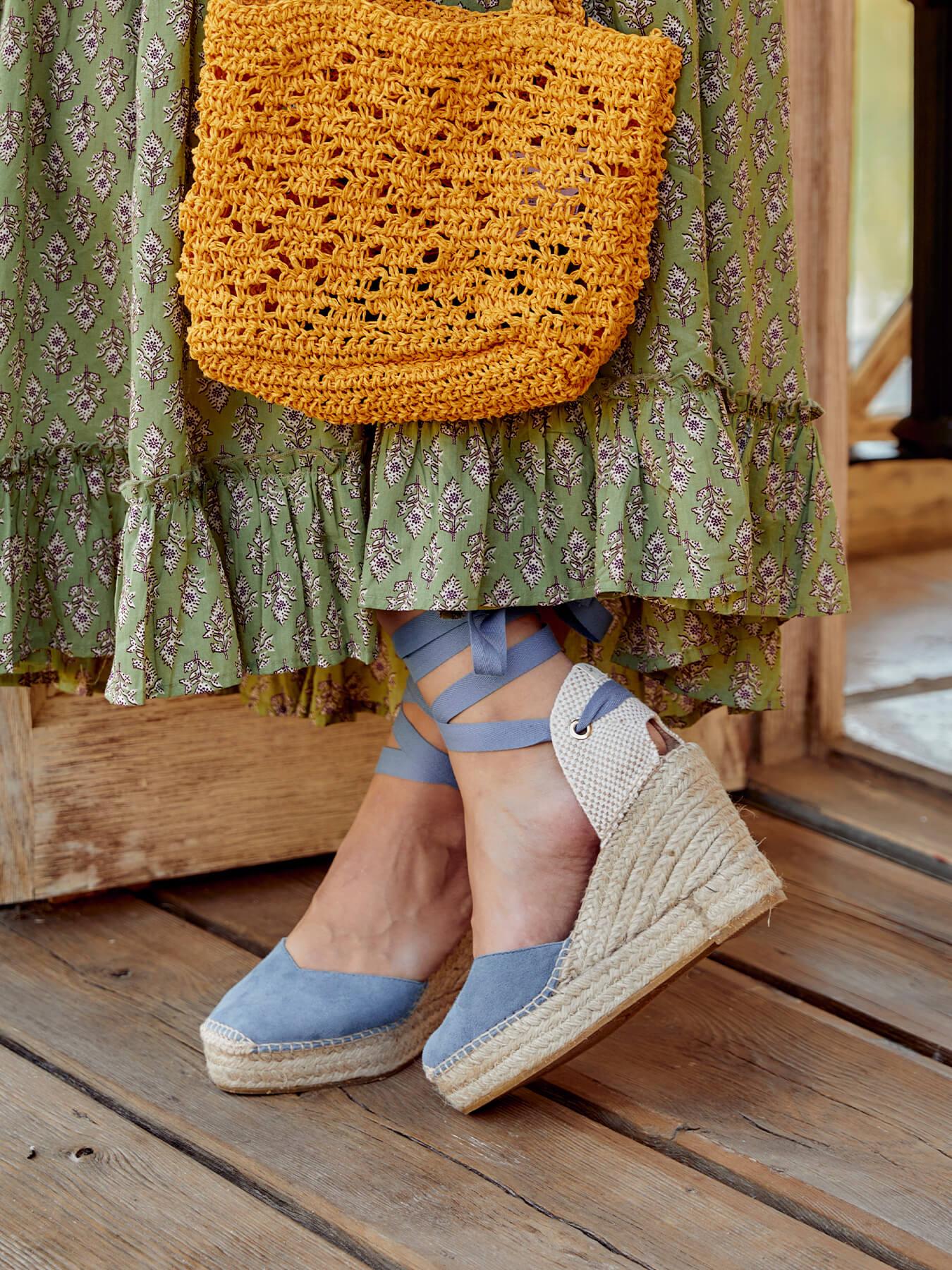 La alpargata de cuña alta Romero, es nuestro modelo más icónico. Una alpargata valenciana de escote corazón con cintas que podrás llevar con tus looks especiales y también con los del día a día. Podrás darle un toque especial porque las cintas se pueden cambiar.