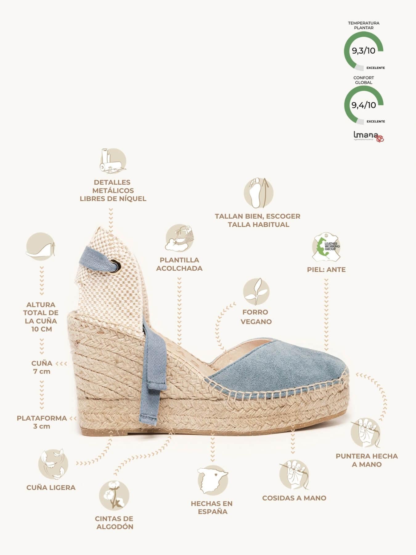 Alpargata Cuña Alta: 10 cm totales (3 de plataforma + 7 de cuña).