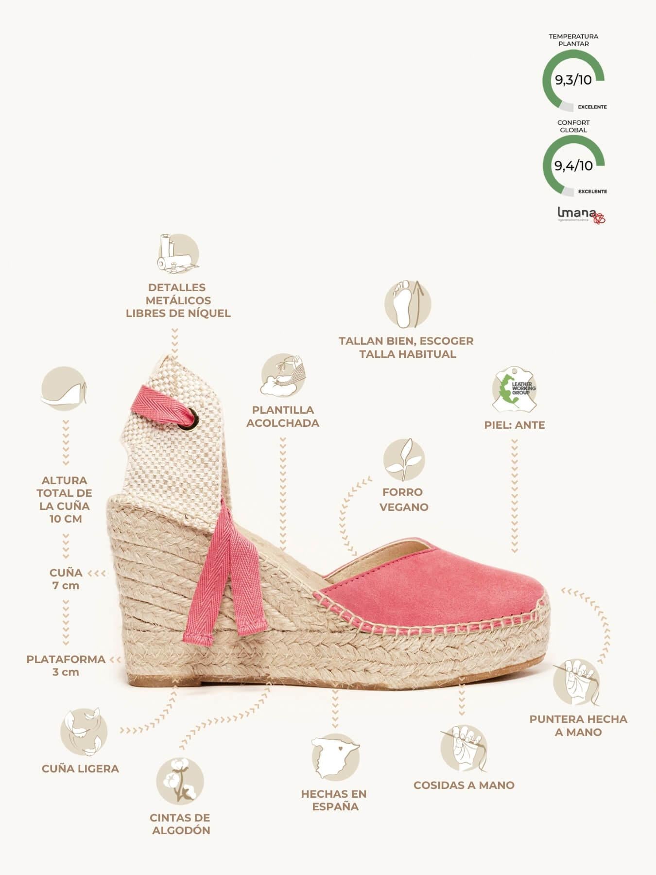 Alpargata Cuña Alta: 10 cm totales (3 de plataforma + 7 de cuña).