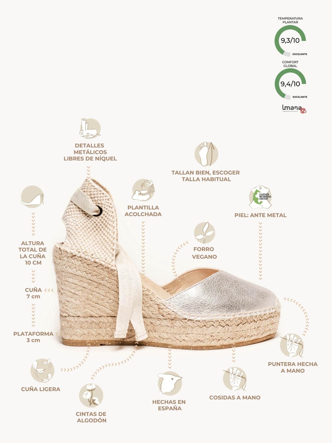 Alpargata Cuña Alta: 10 cm totales (3 de plataforma + 7 de cuña).
