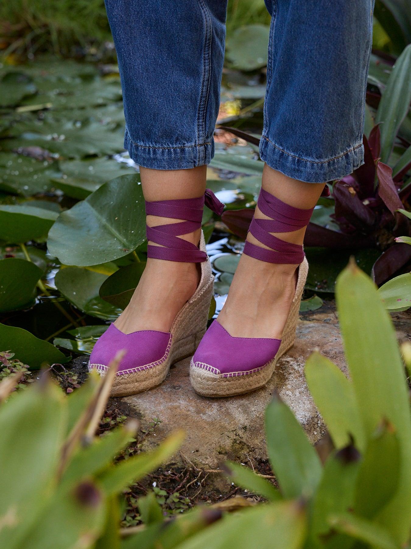 La alpargata de cuña alta Romero, es nuestro modelo más icónico. Una alpargata valenciana de escote corazón con cintas que podrás llevar con tus looks especiales y también con los del día a día. Podrás darle un toque especial porque las cintas se pueden cambiar.
